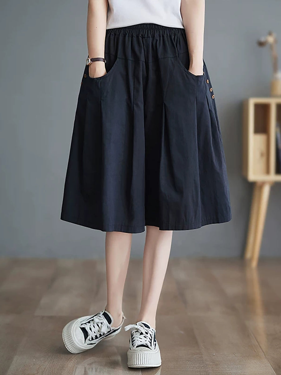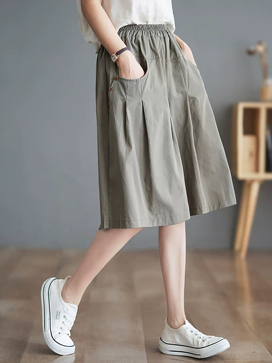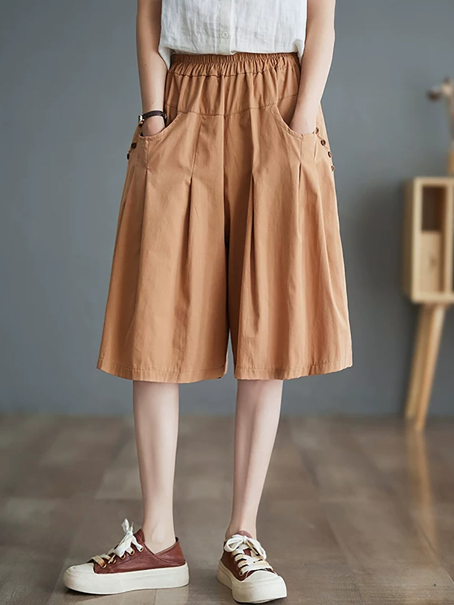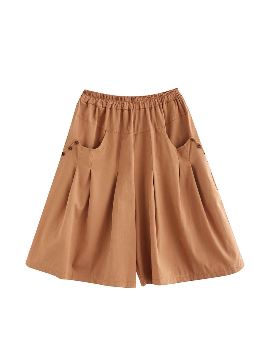 Women Summer Pure Color Wide-leg Middle Pants