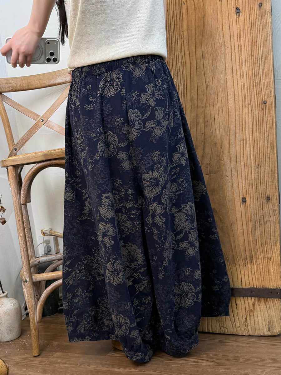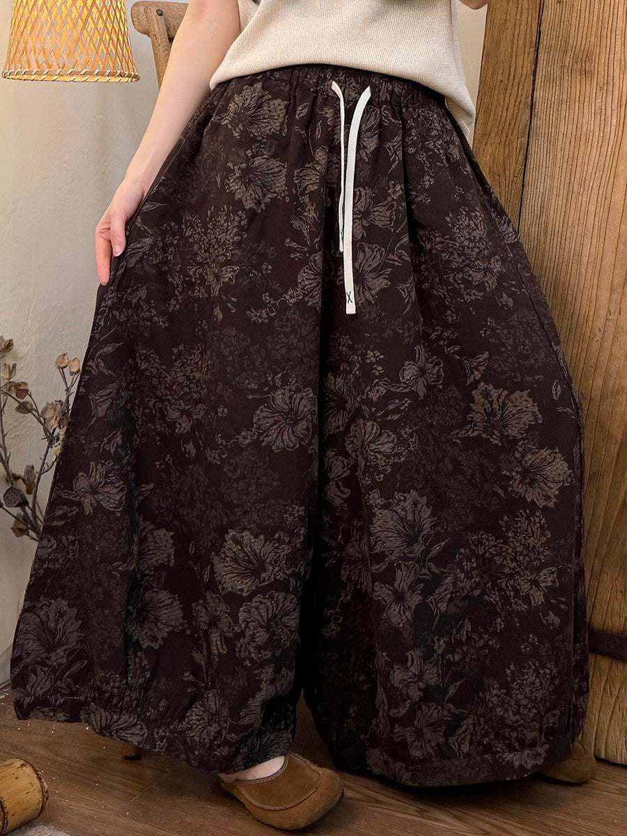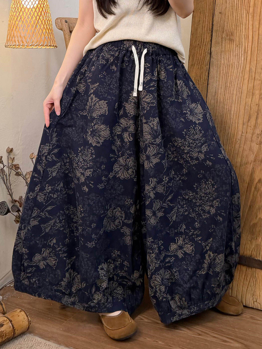 Women Summer Vintage Flower Wide-leg Pants
