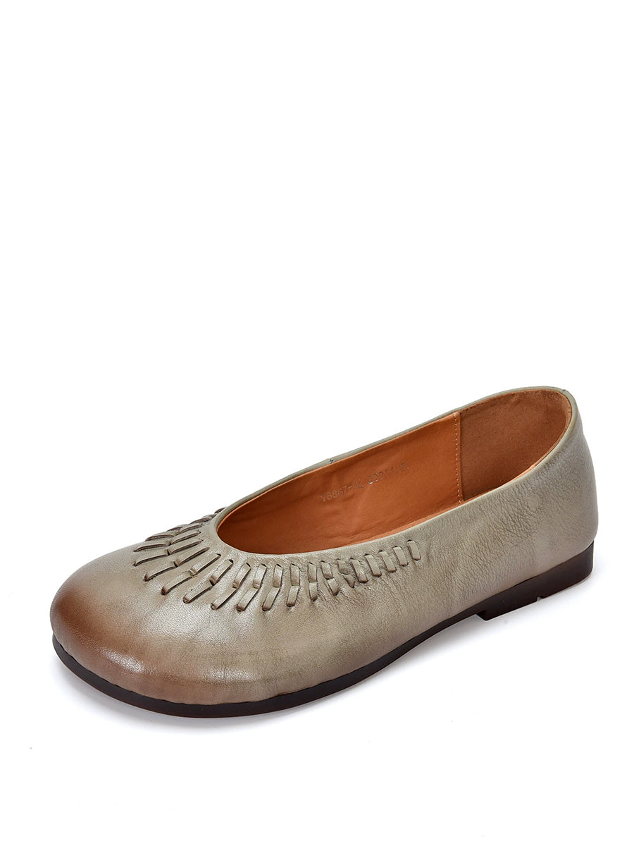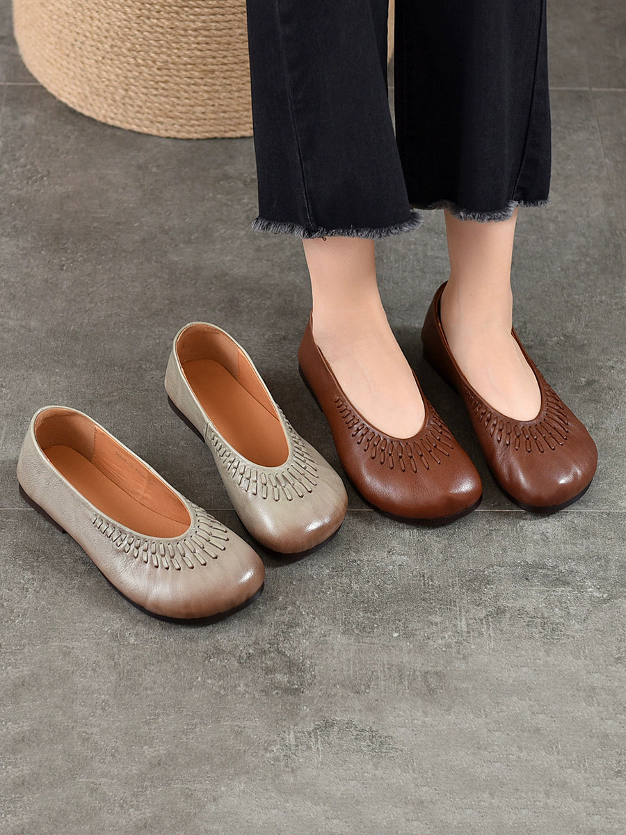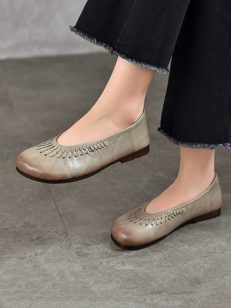 Women Summer Vintage Genuine Leather Flat Shoes