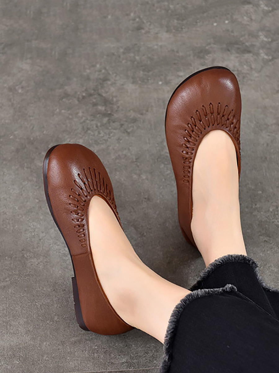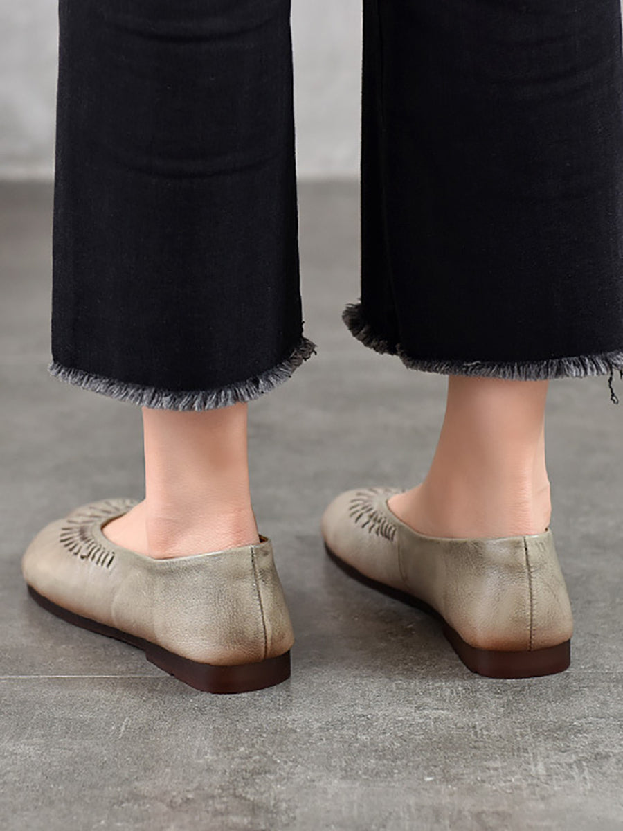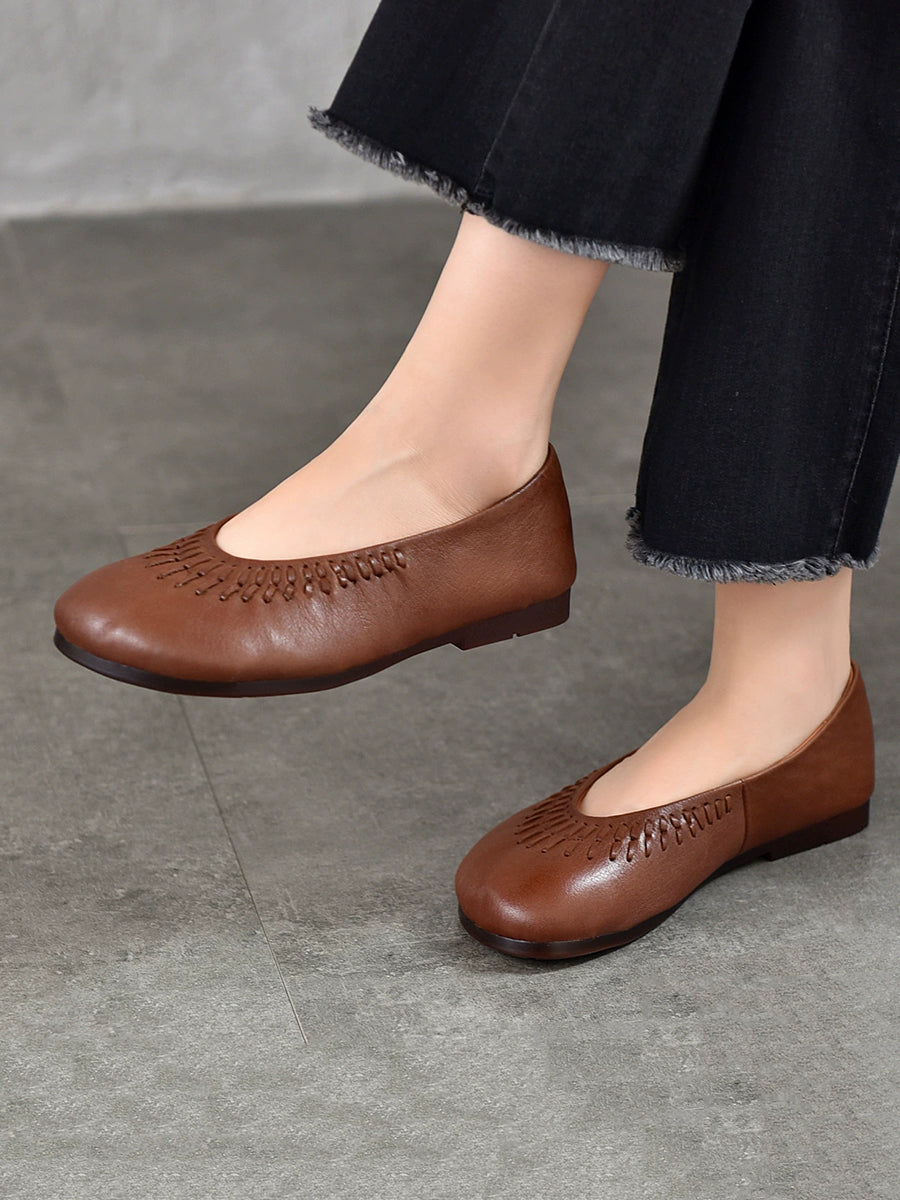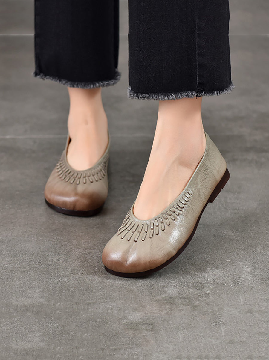 Women Summer Vintage Genuine Leather Flat Shoes