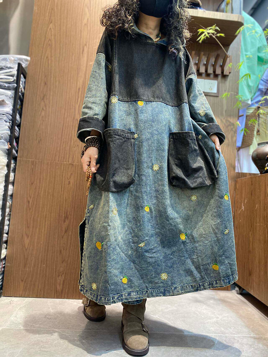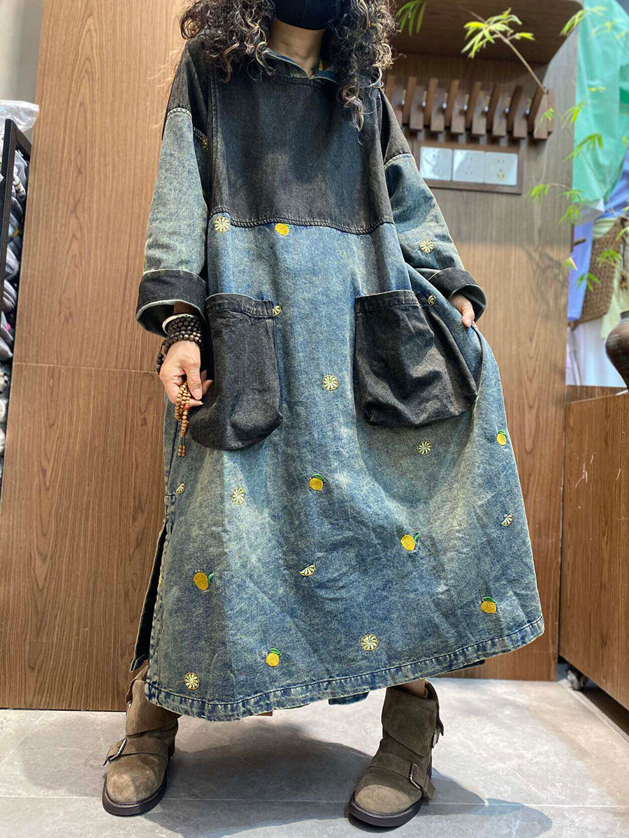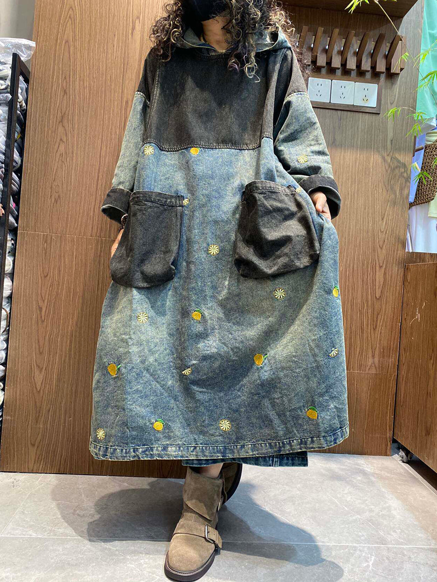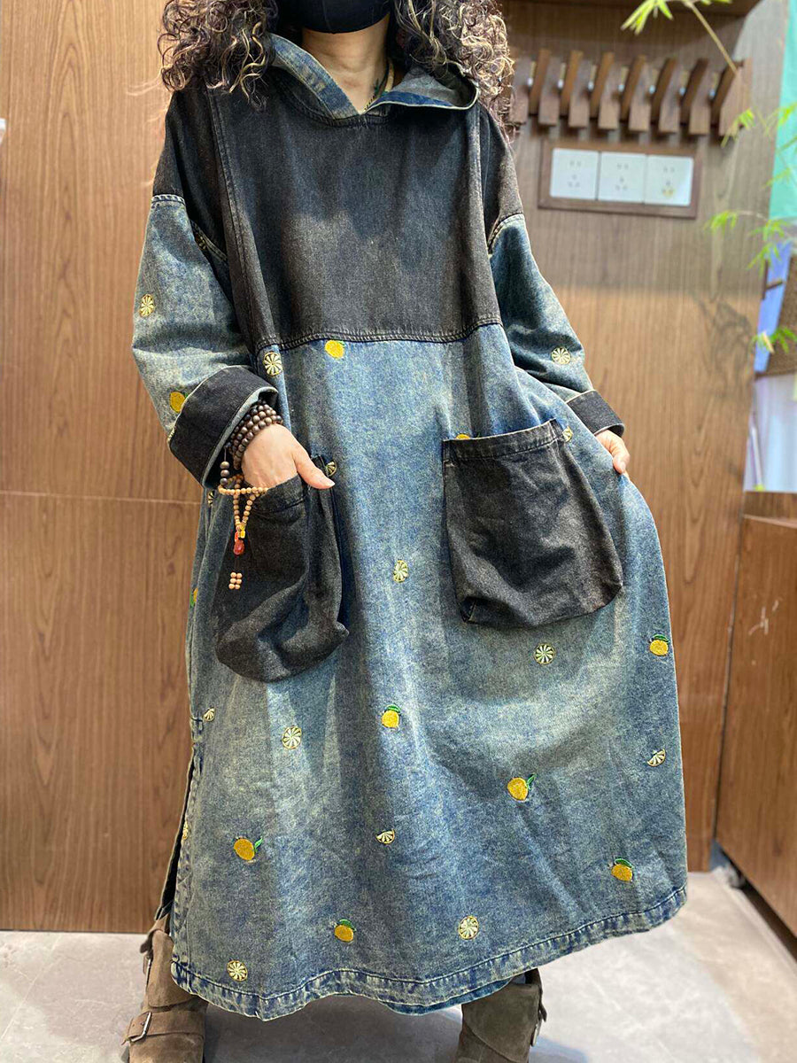 Women Summer Vintage Patchwork Denim Hooded Dress