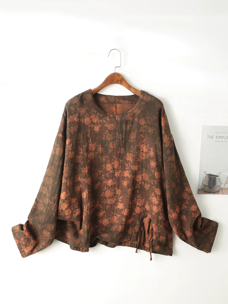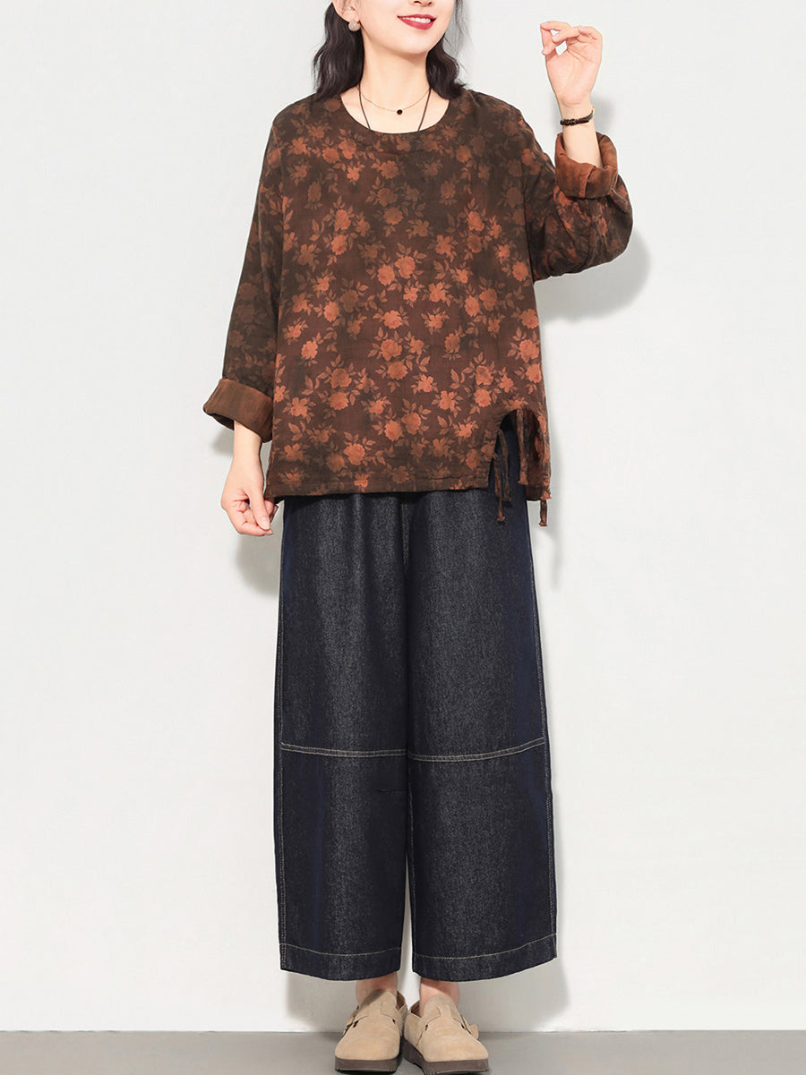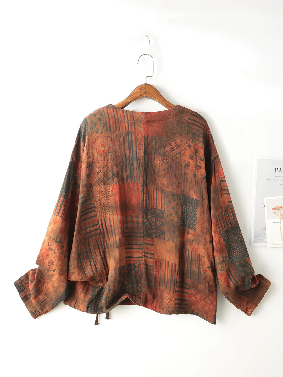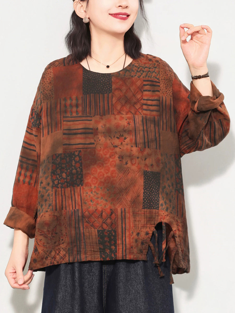 Women Summer Vintage Patchwork O-Neck Cotton Shirt