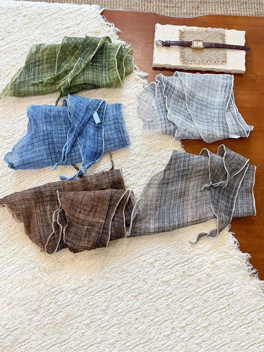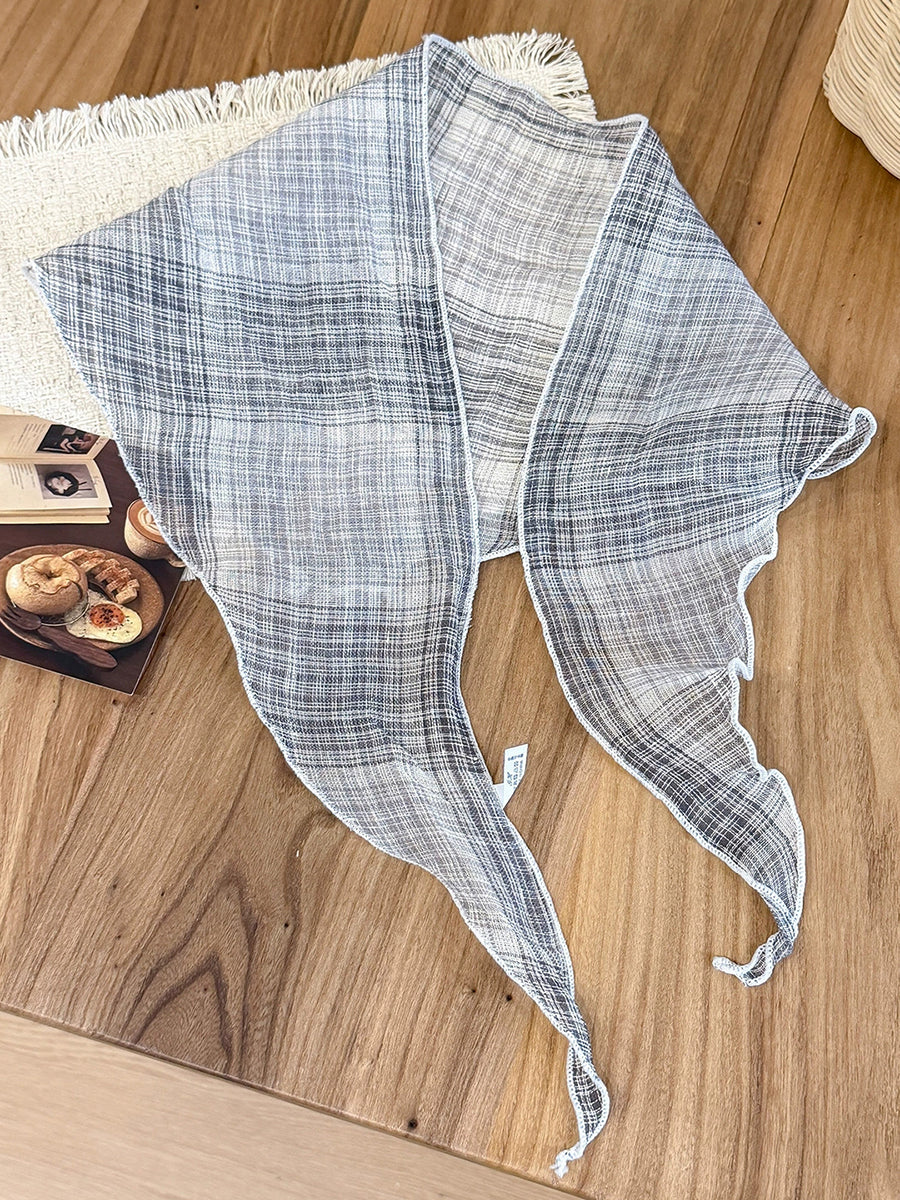Women Summer Vintage Plaid Thin Triangle Scarf