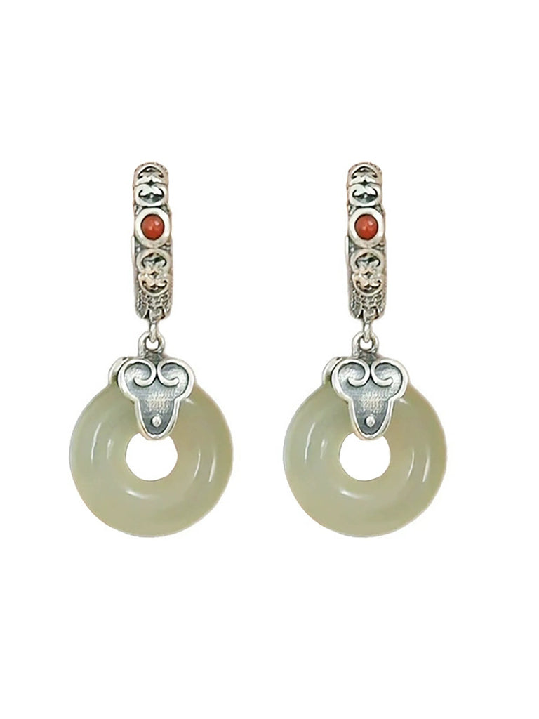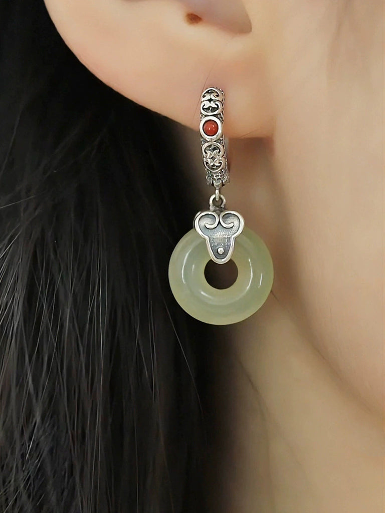Women Vintage Alloy Jade Earrings
