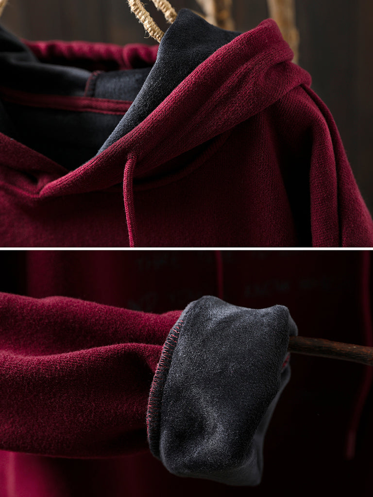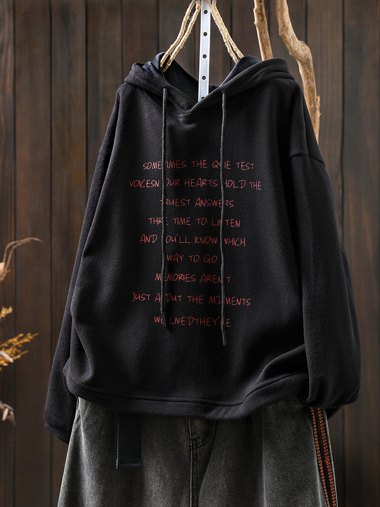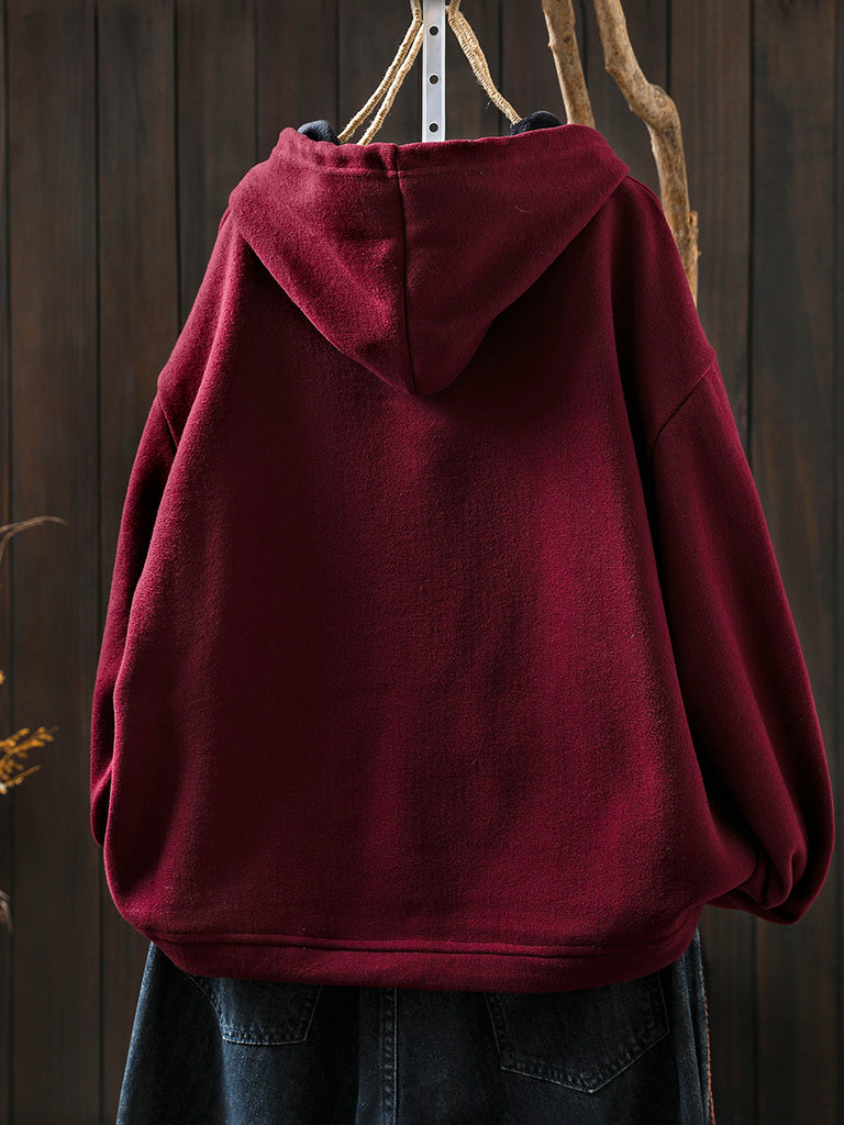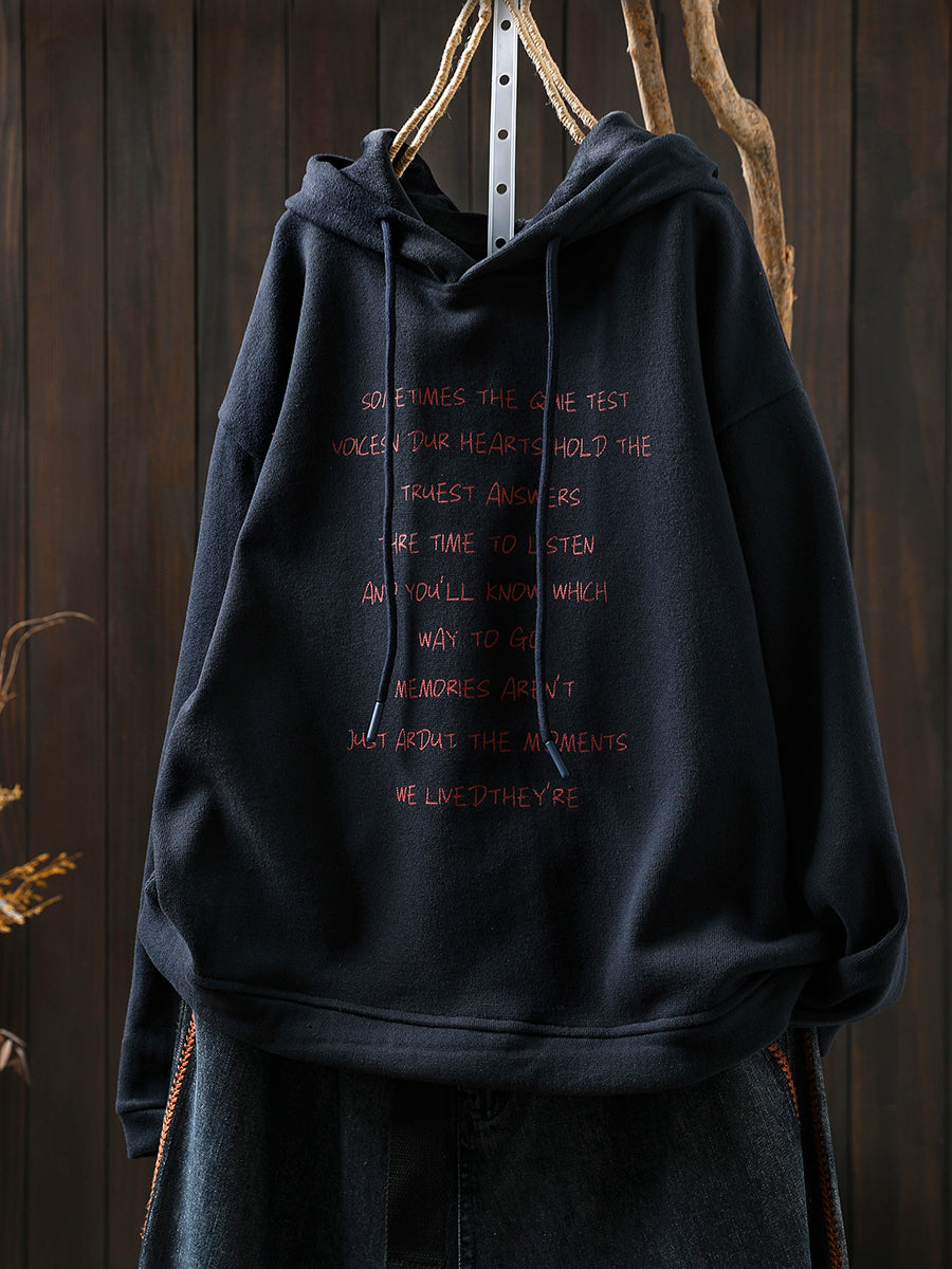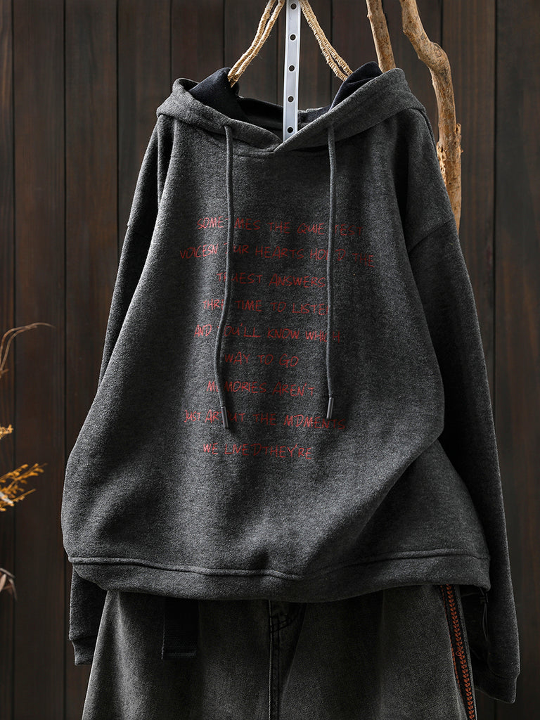 Women Casual Autumn Print Cotton Fleece-lined Hoodie