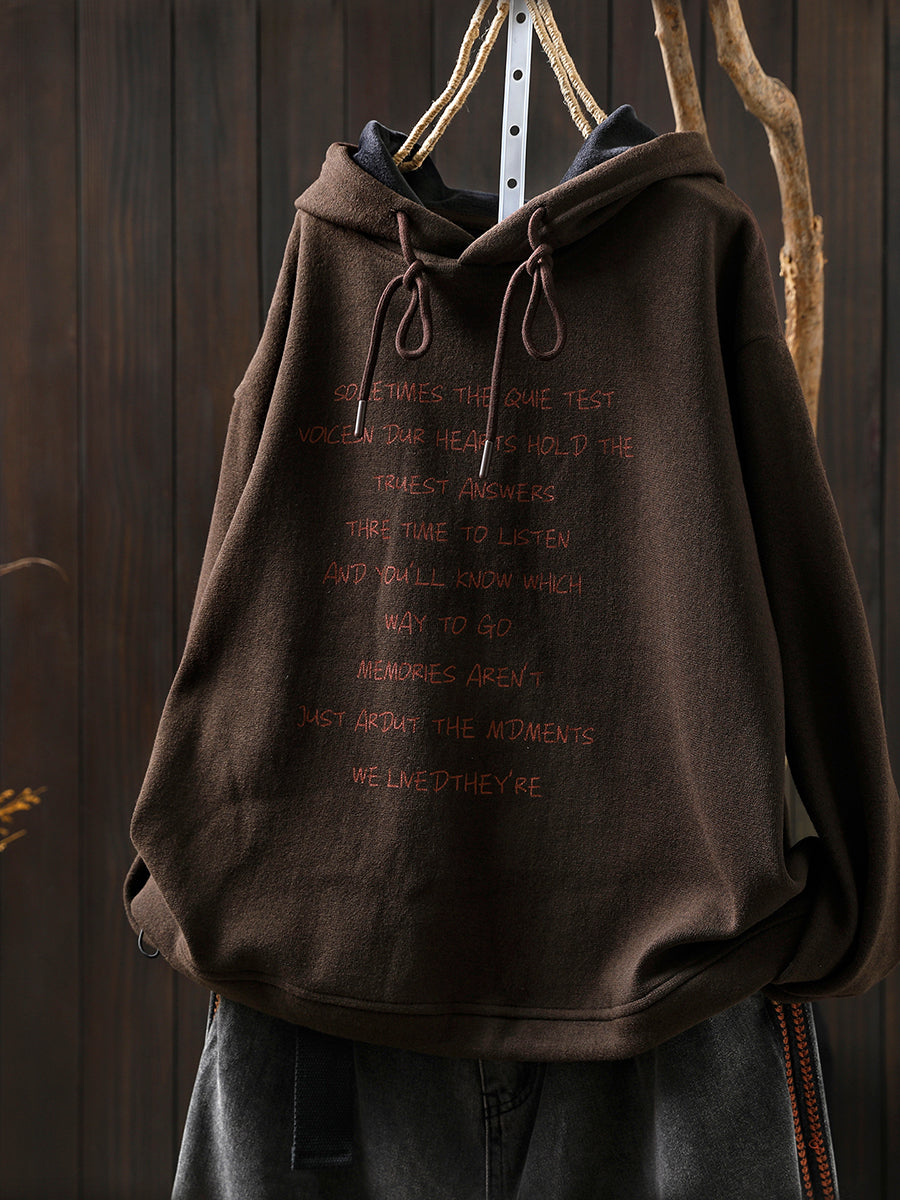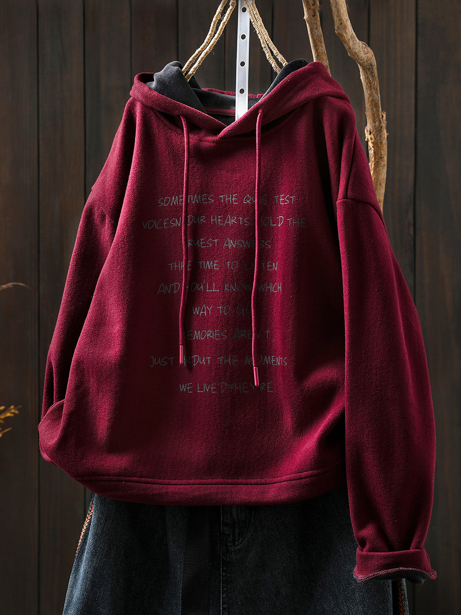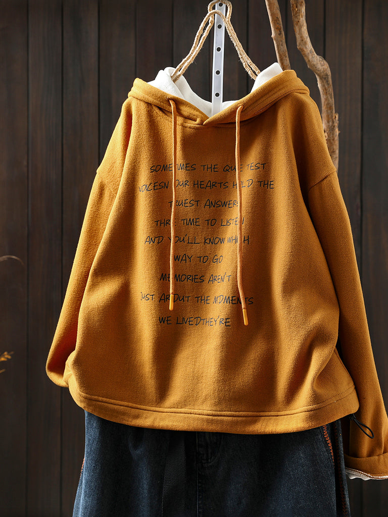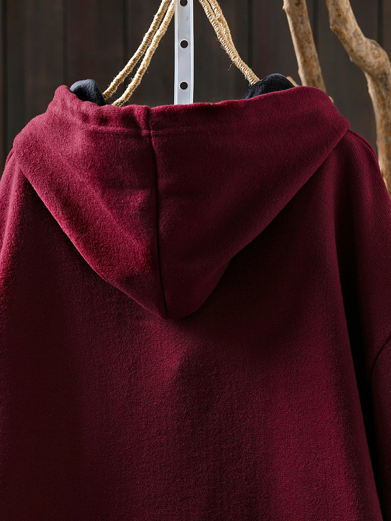 Women Casual Autumn Print Cotton Fleece-lined Hoodie