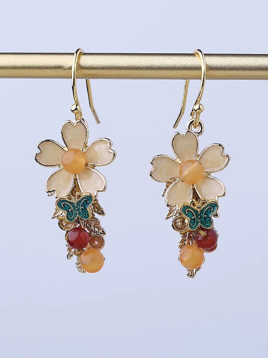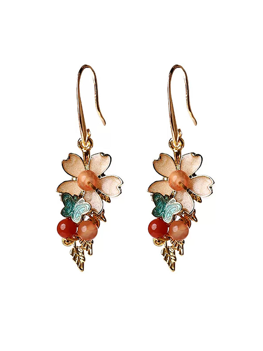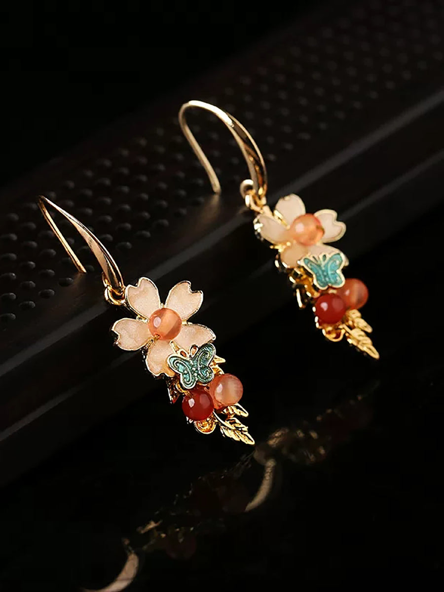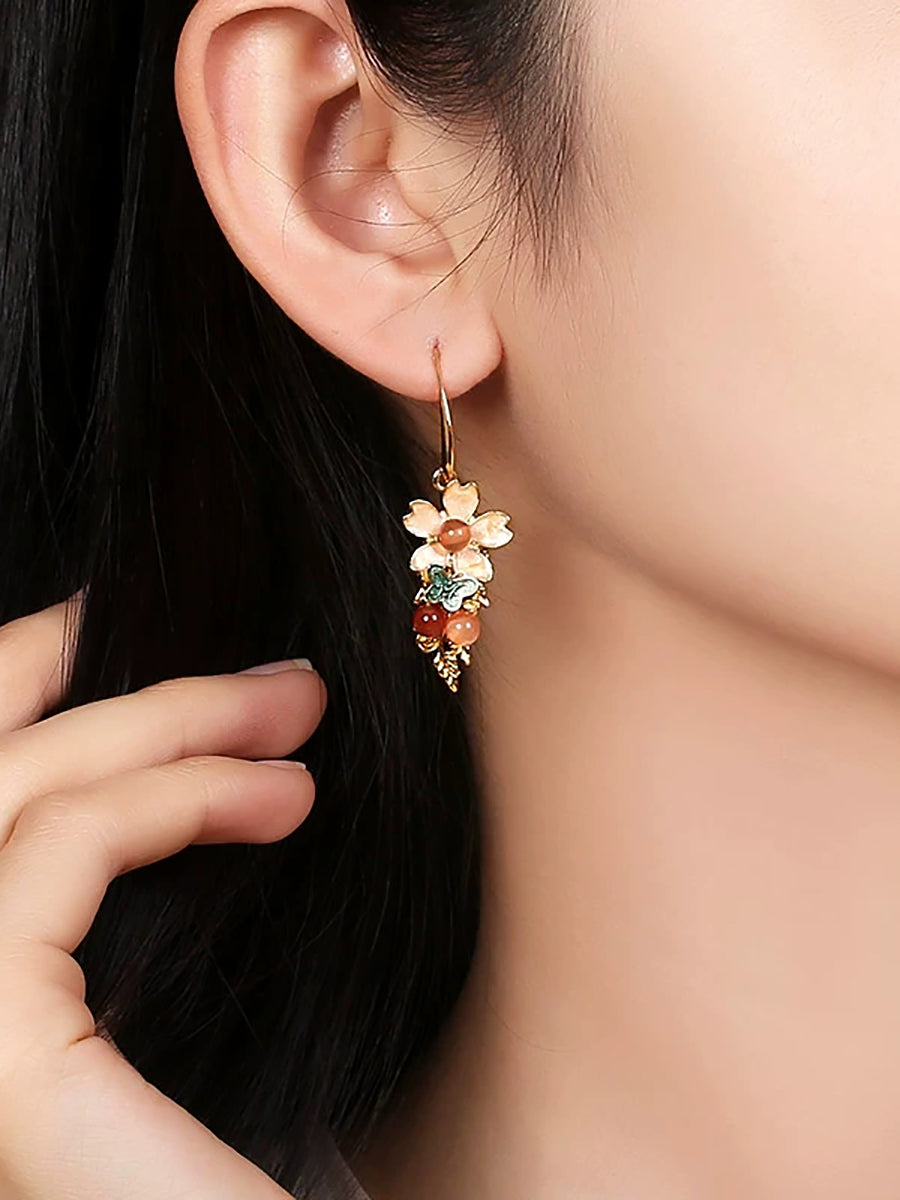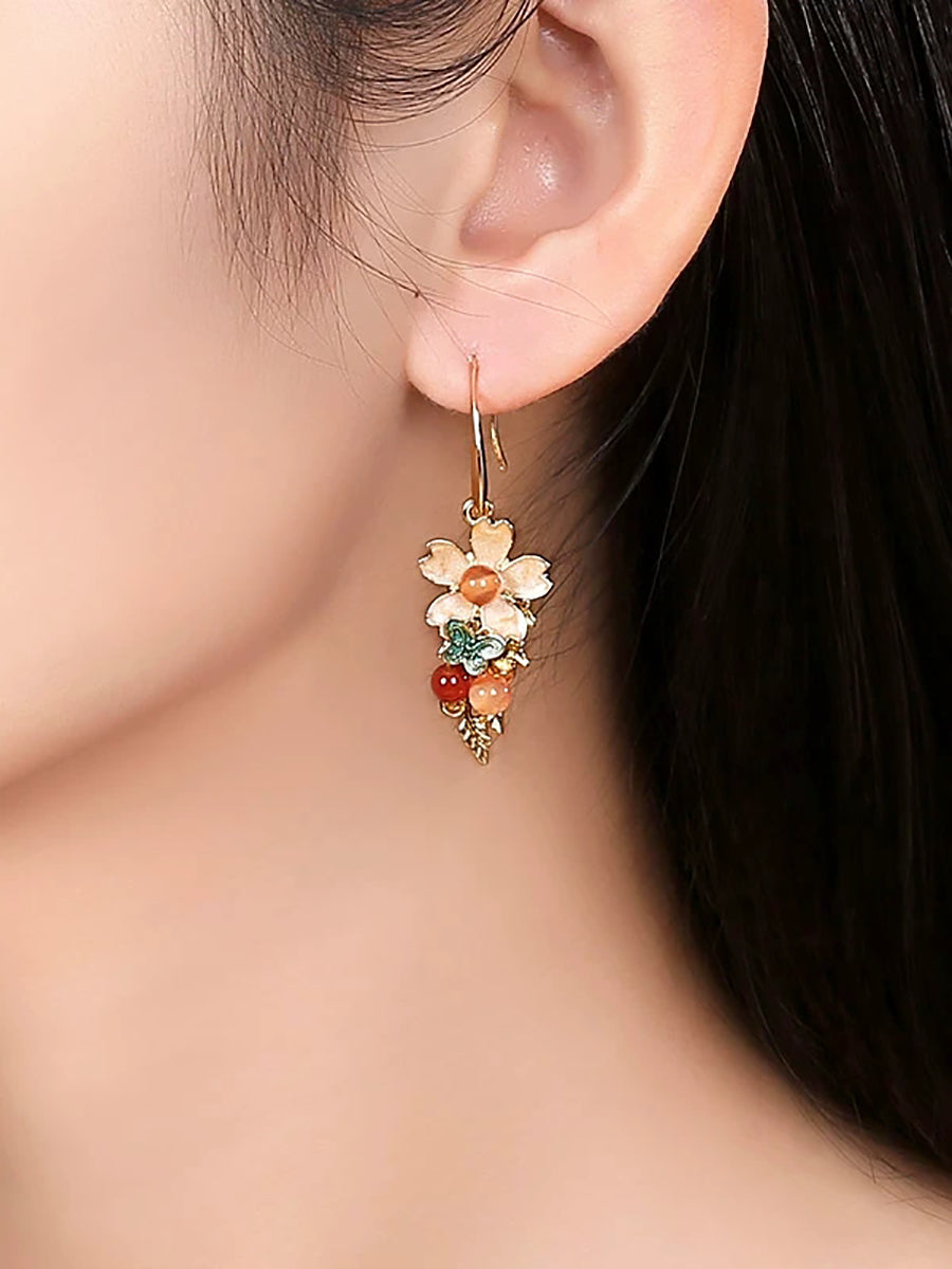 Women Vintage Cloisonne Flower Jade Earrings