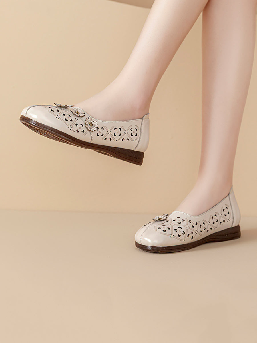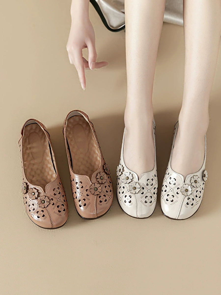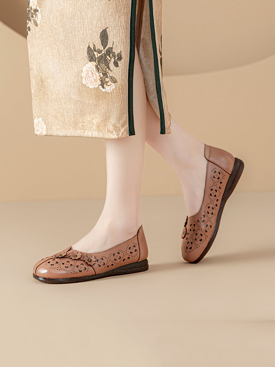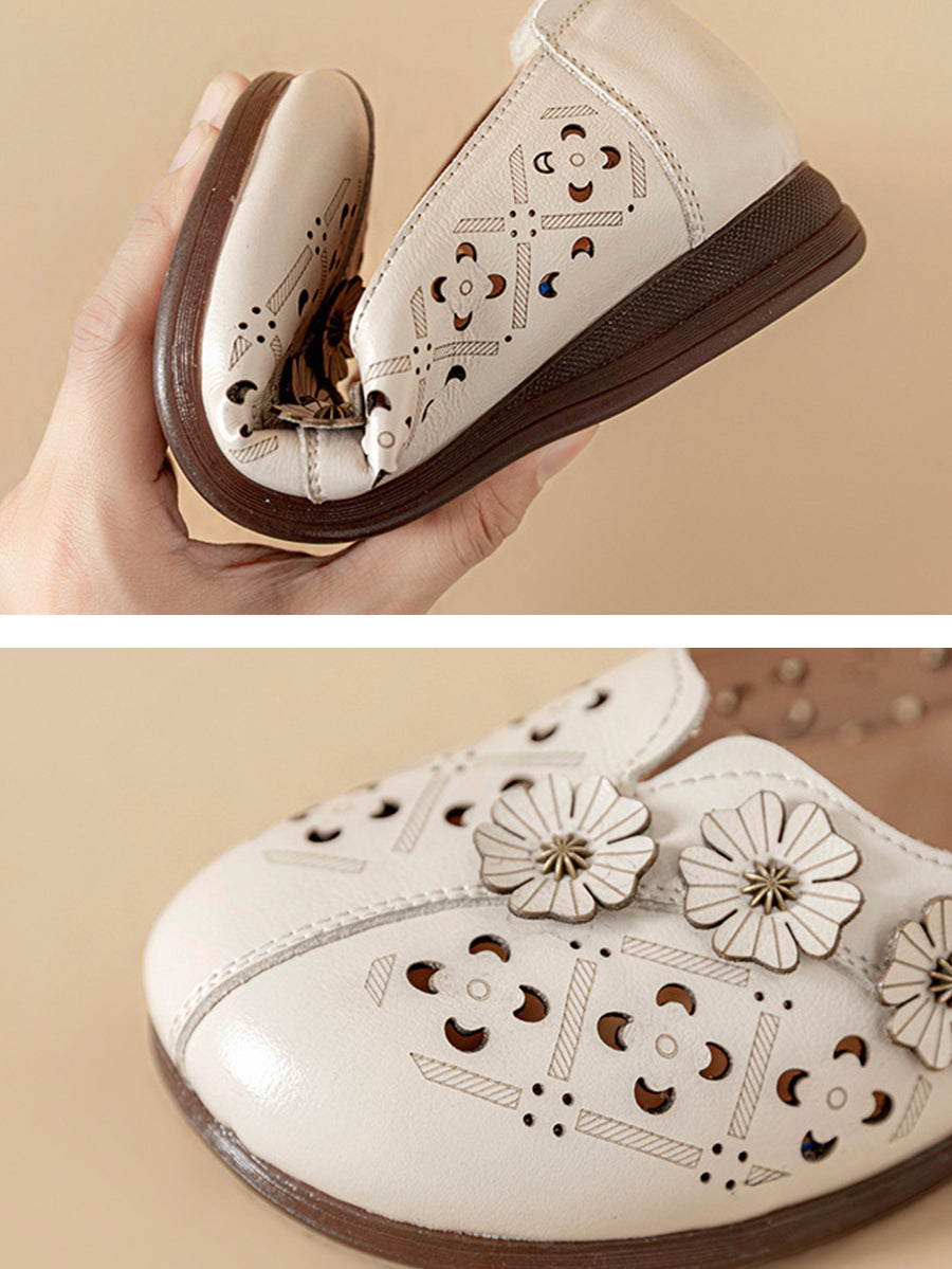 Women Vintage Flower Genuine Leather Sandals