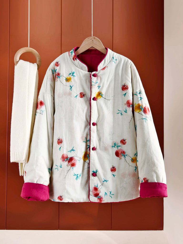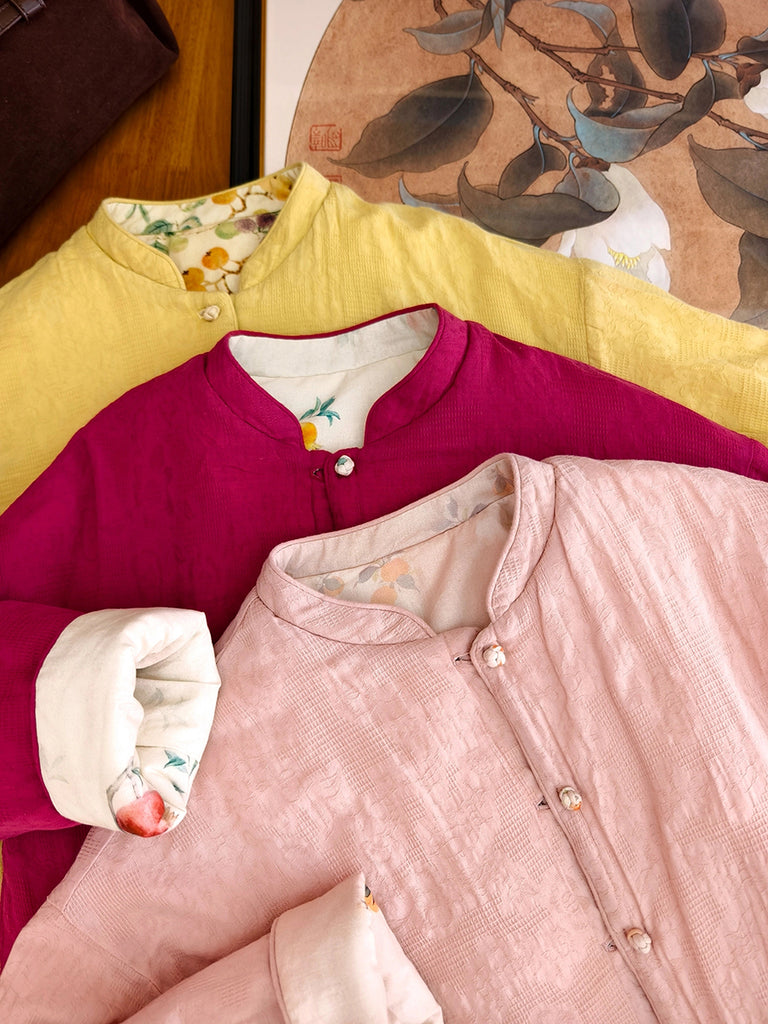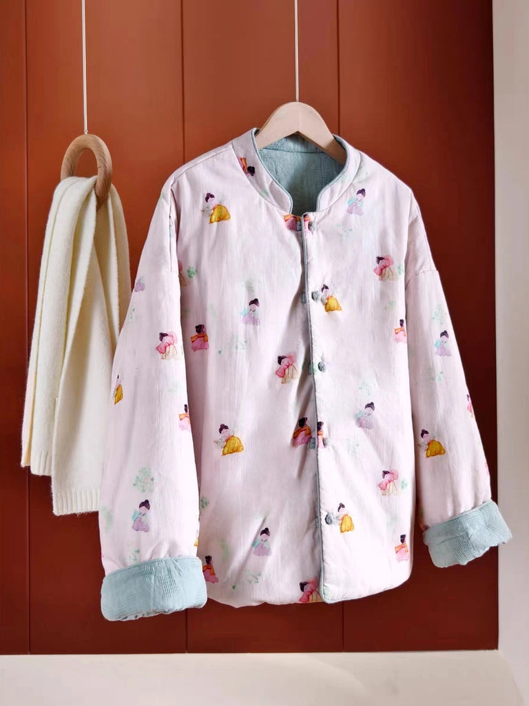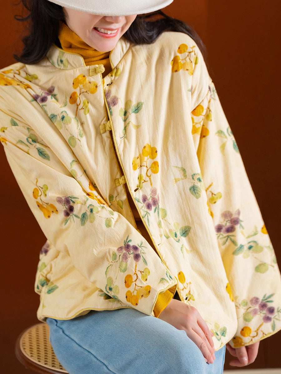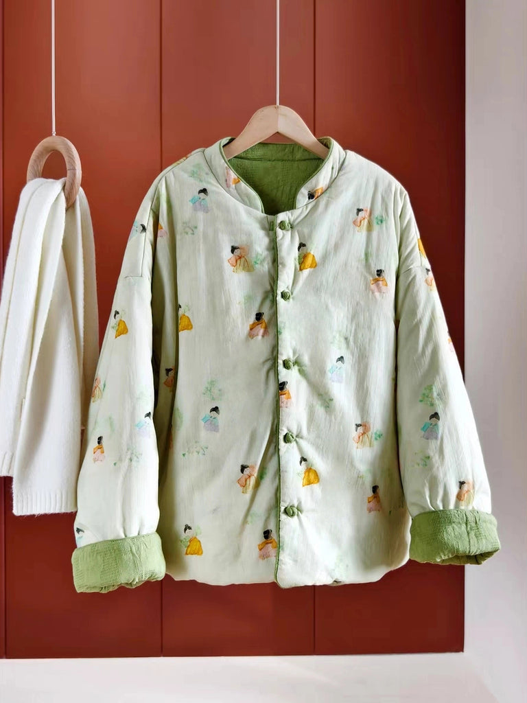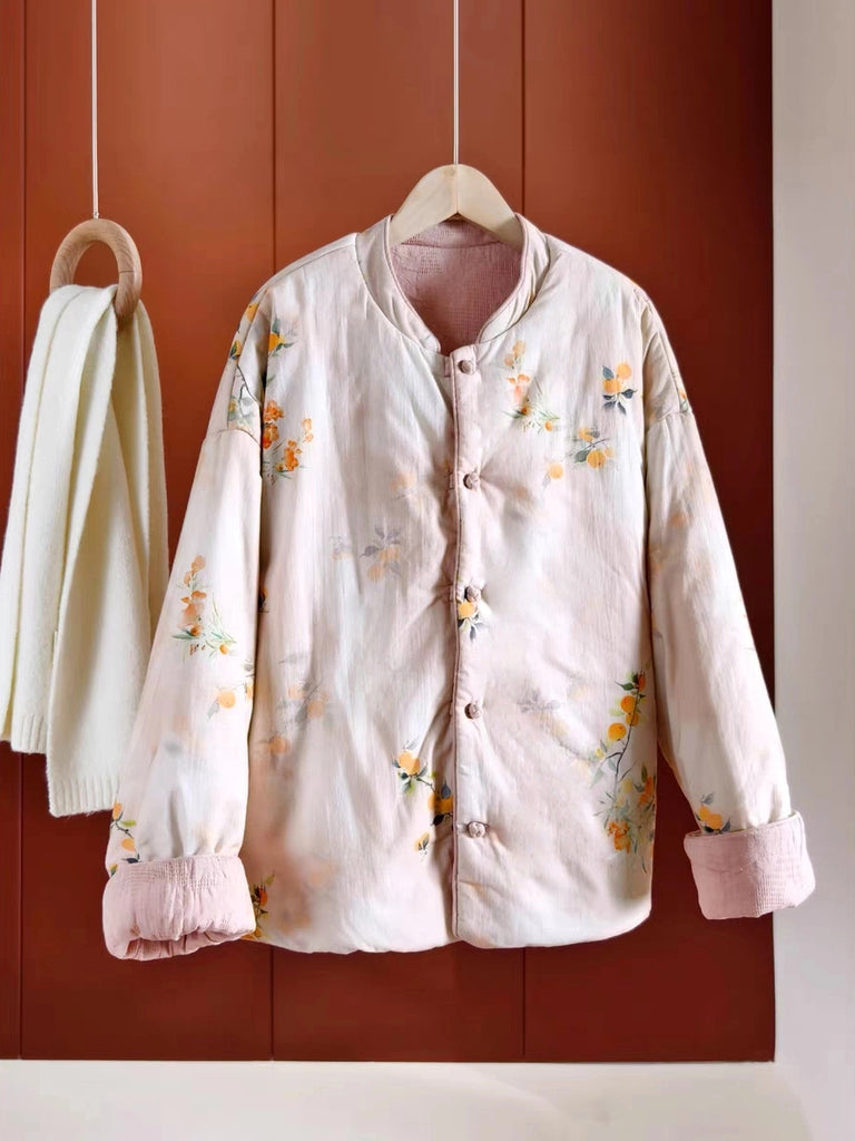 Women Vintage Flower Stand Collar 100%Cotton Padded Coat