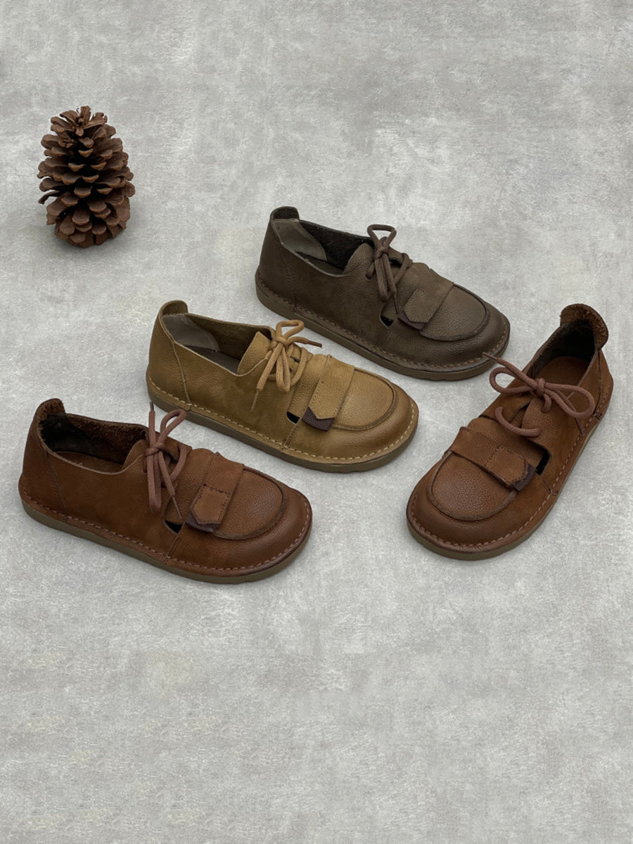Women Vintage Genuine Leather Flat Shoes