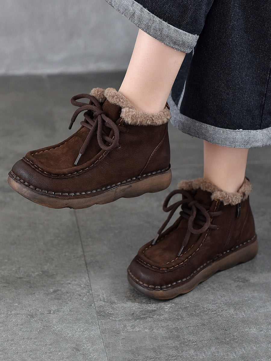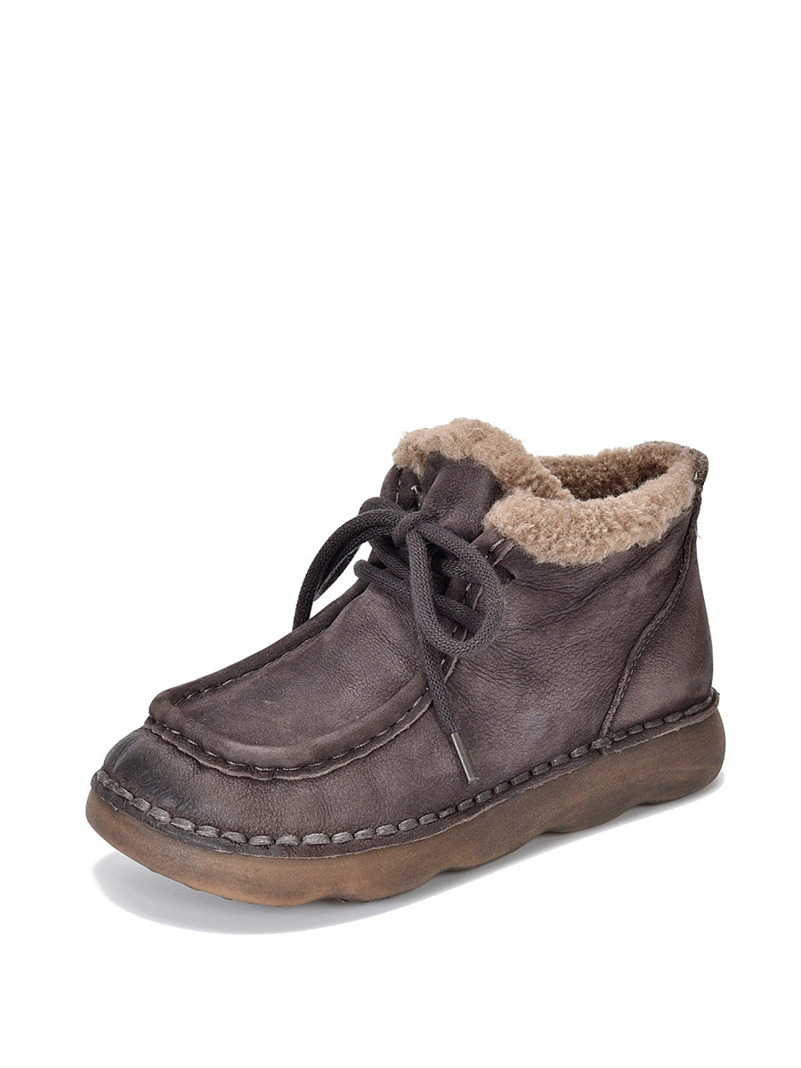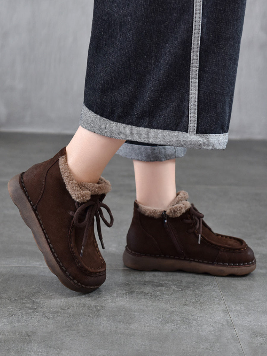 Women Vintage Genuine Leather Fleece-lined Ankle Boots