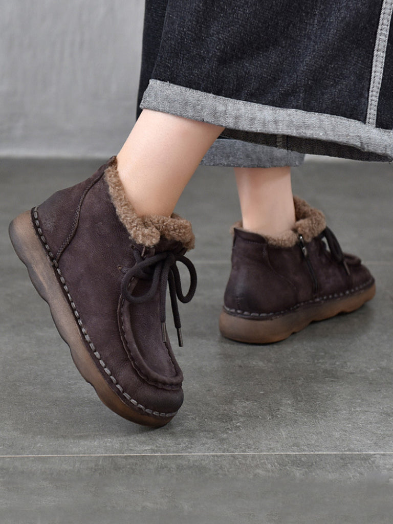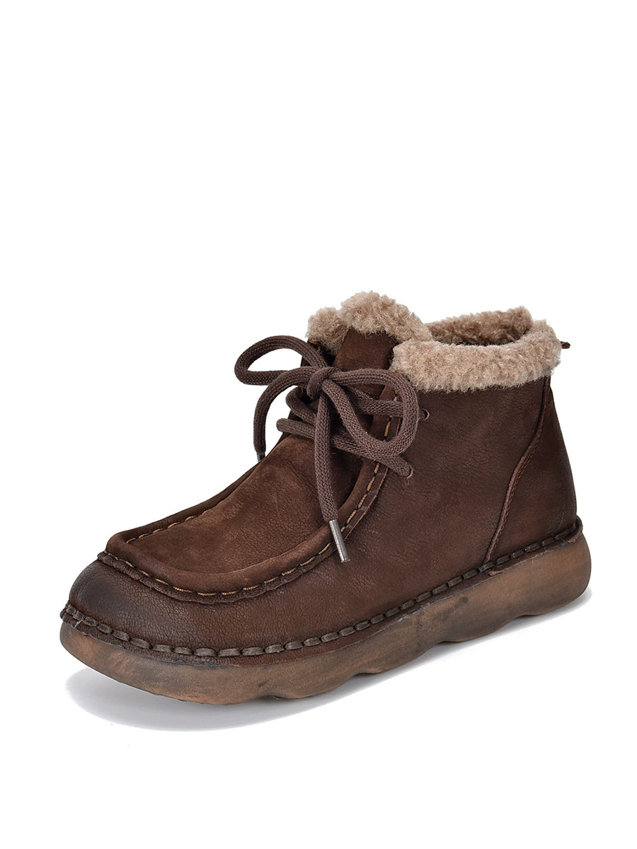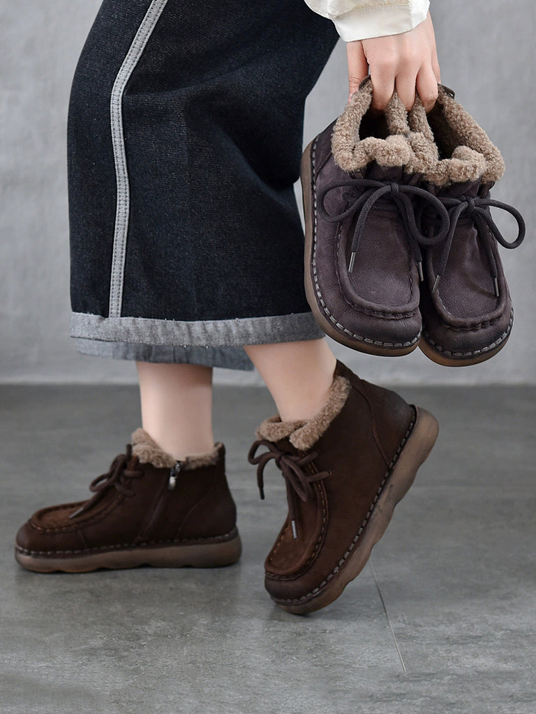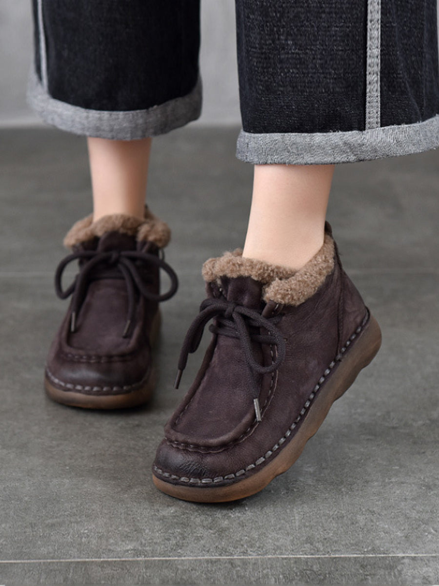 Women Vintage Genuine Leather Fleece-lined Ankle Boots