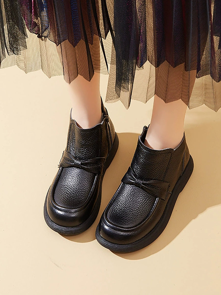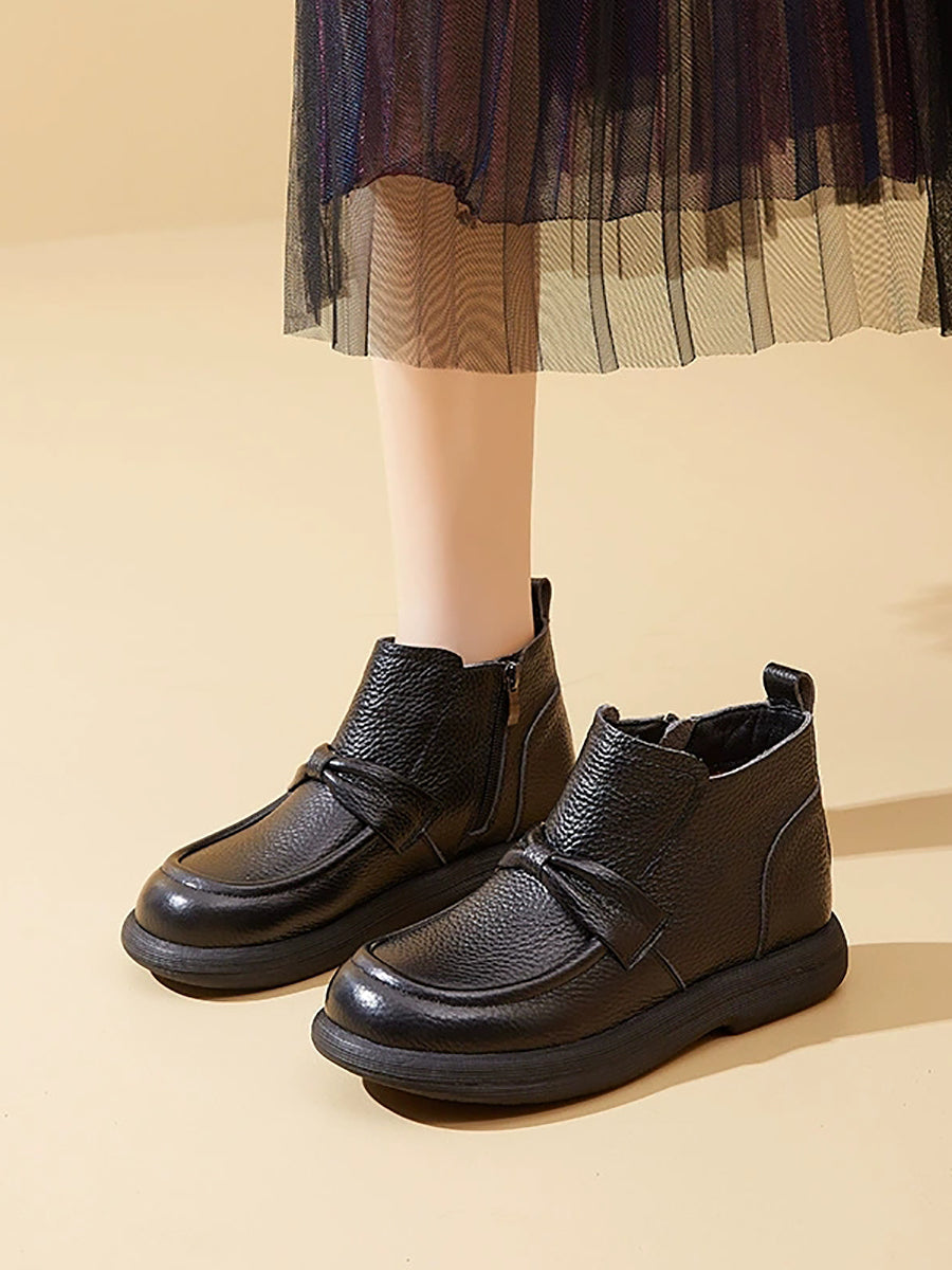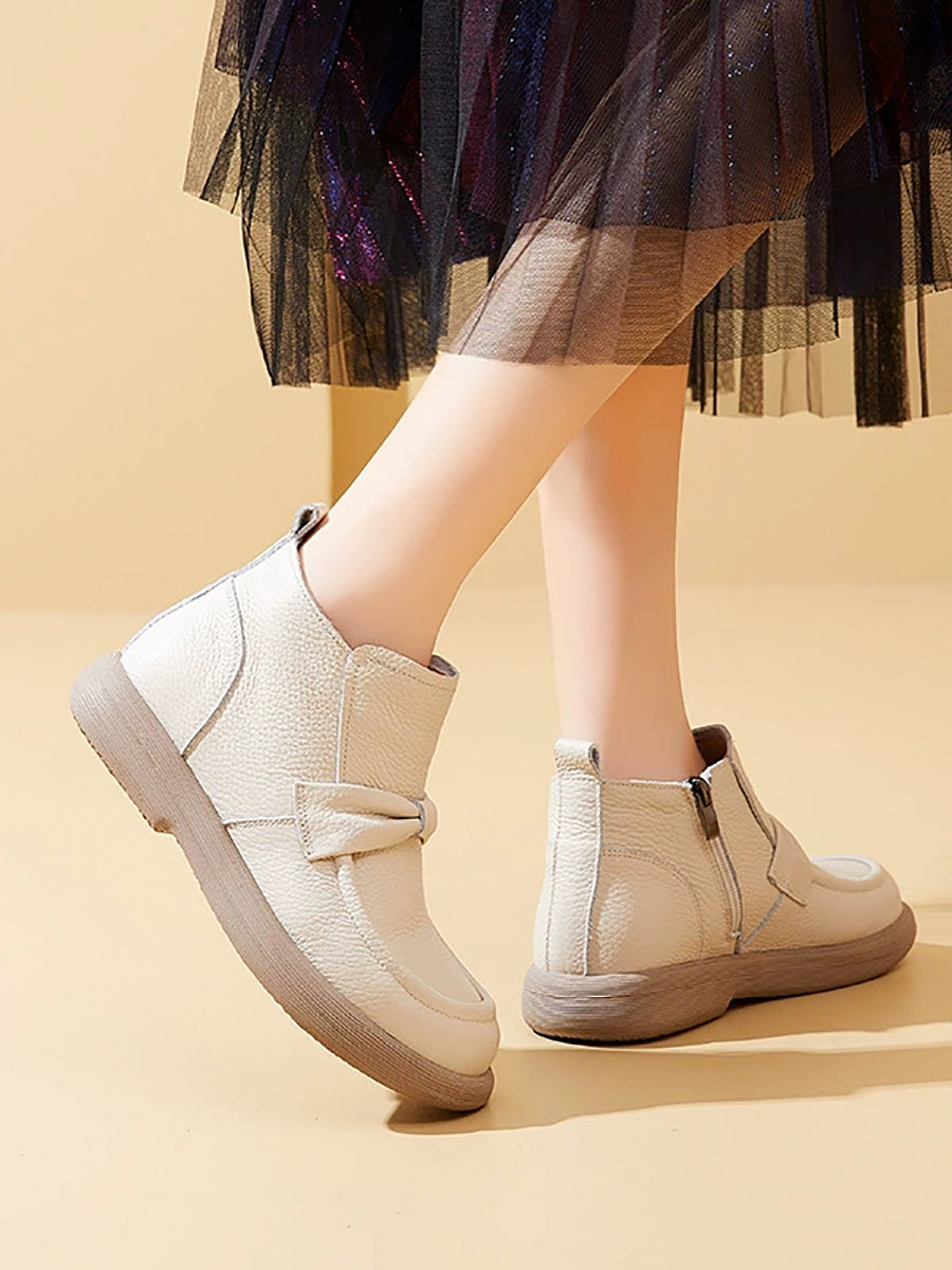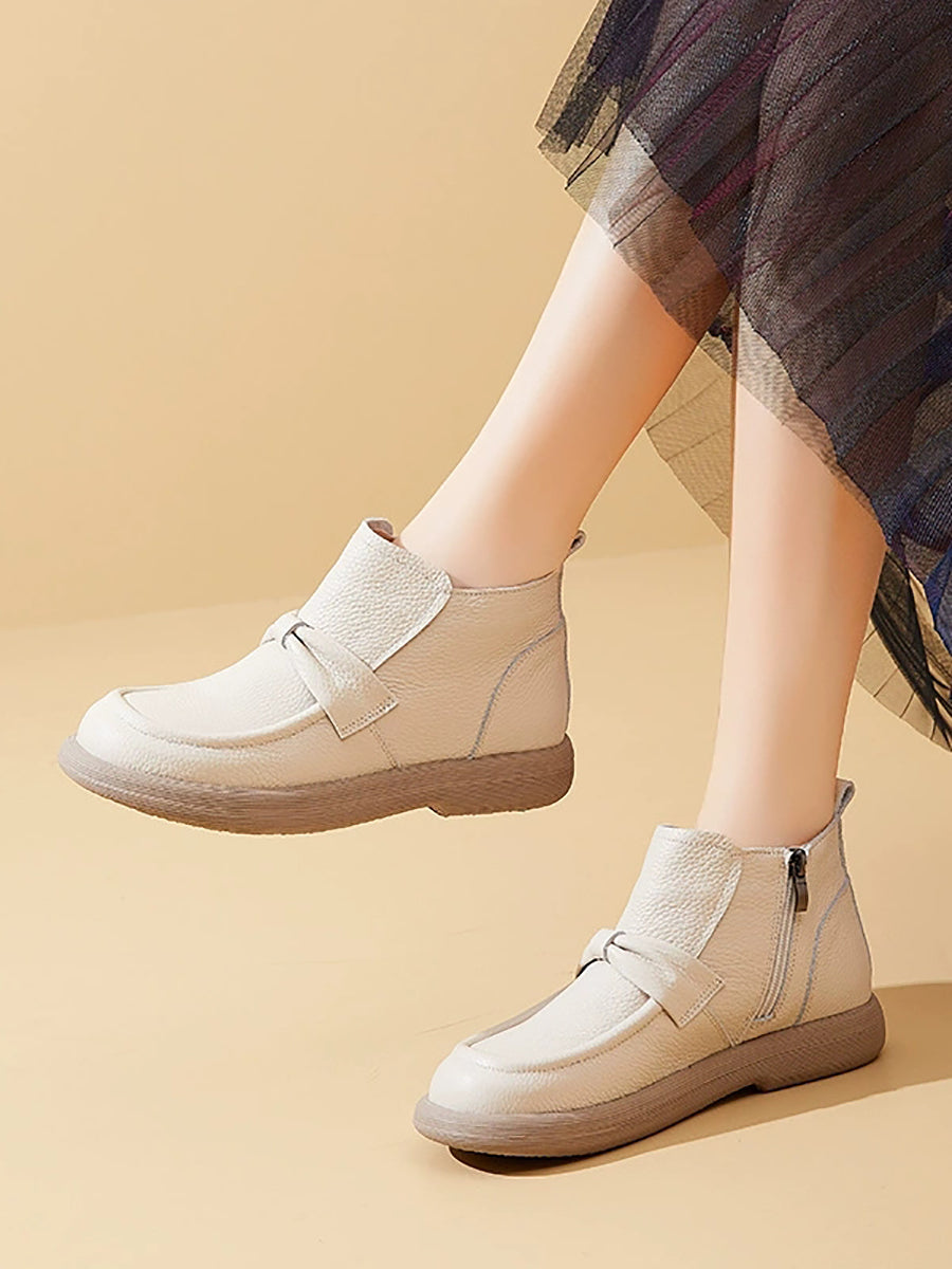 Women Vintage Genuine Leather Fleece-lined Ankle Boots