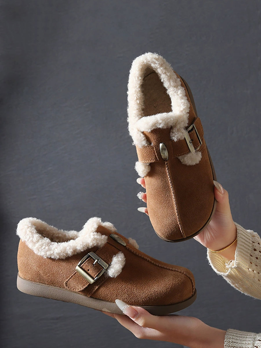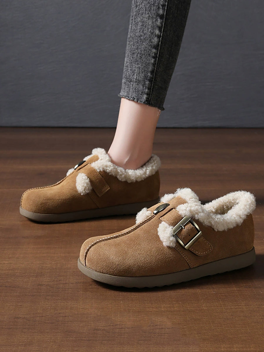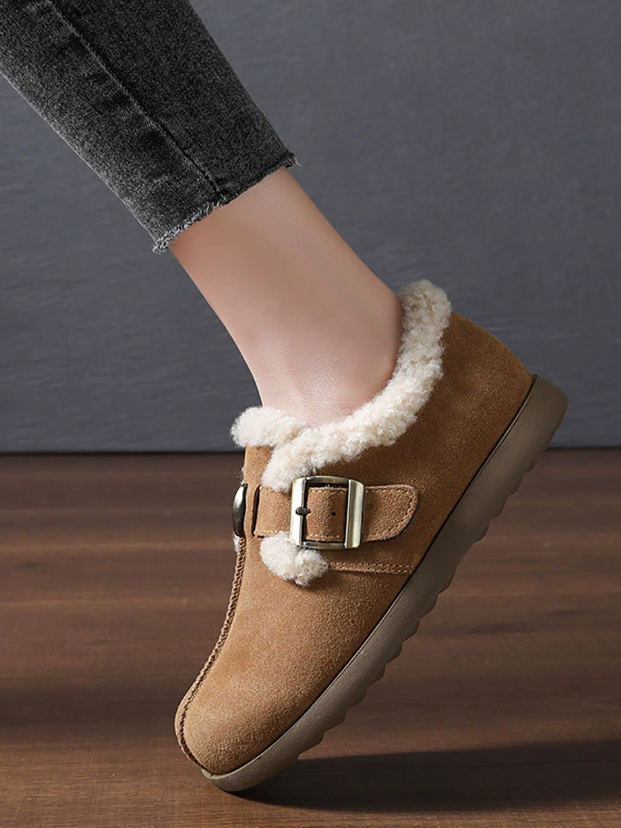 Women Vintage Genuine Leather Fleece-lined Shoes