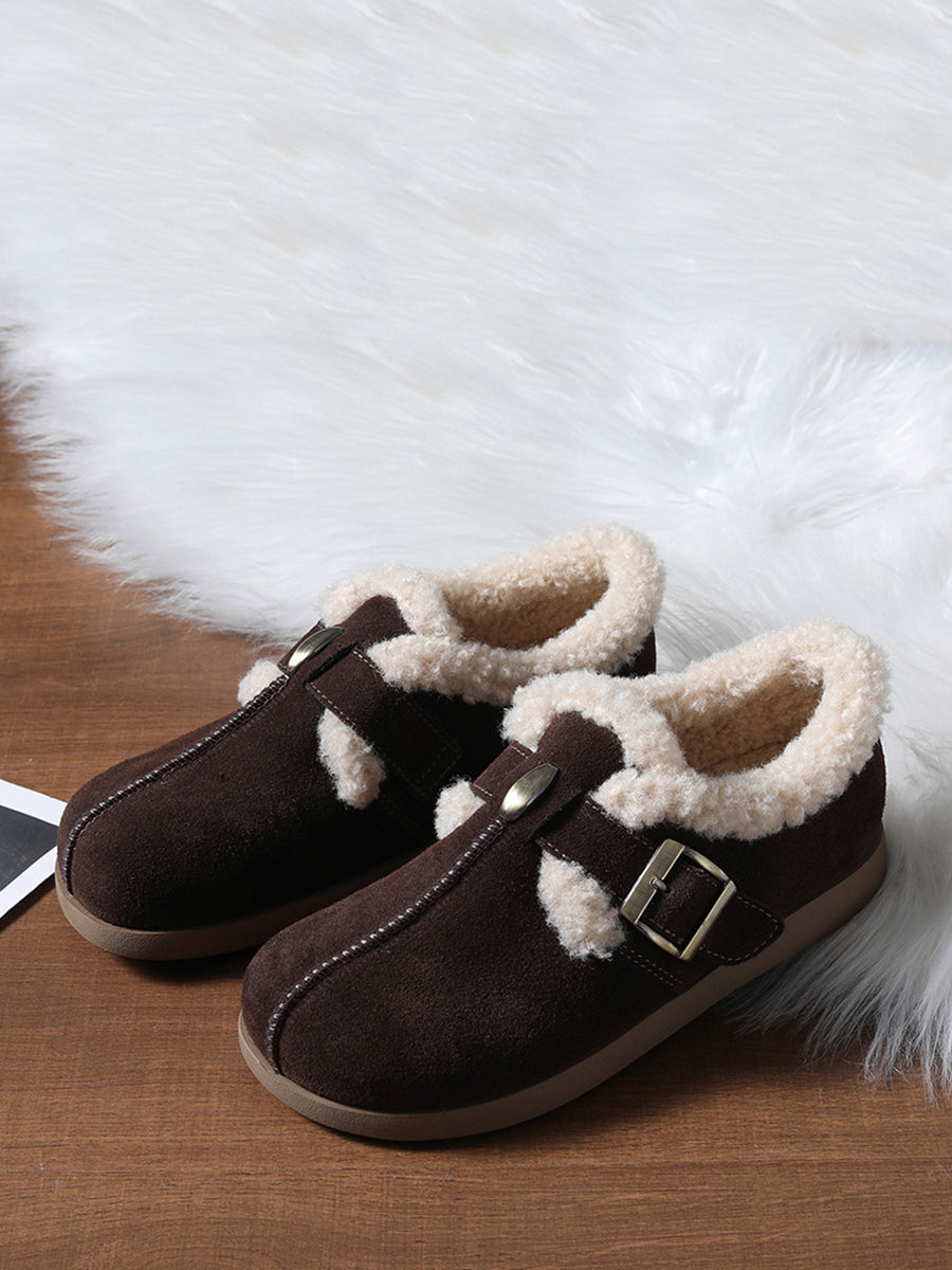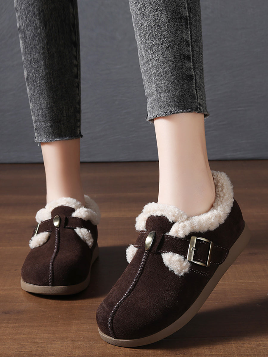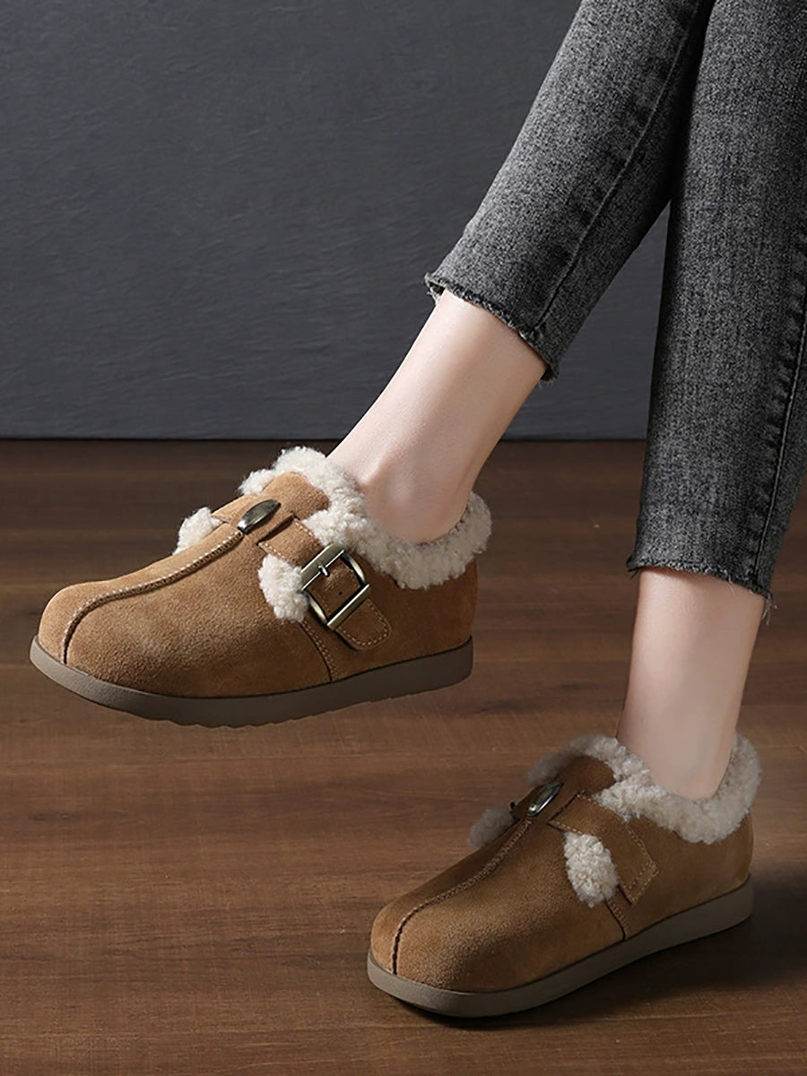 Women Vintage Genuine Leather Fleece-lined Shoes