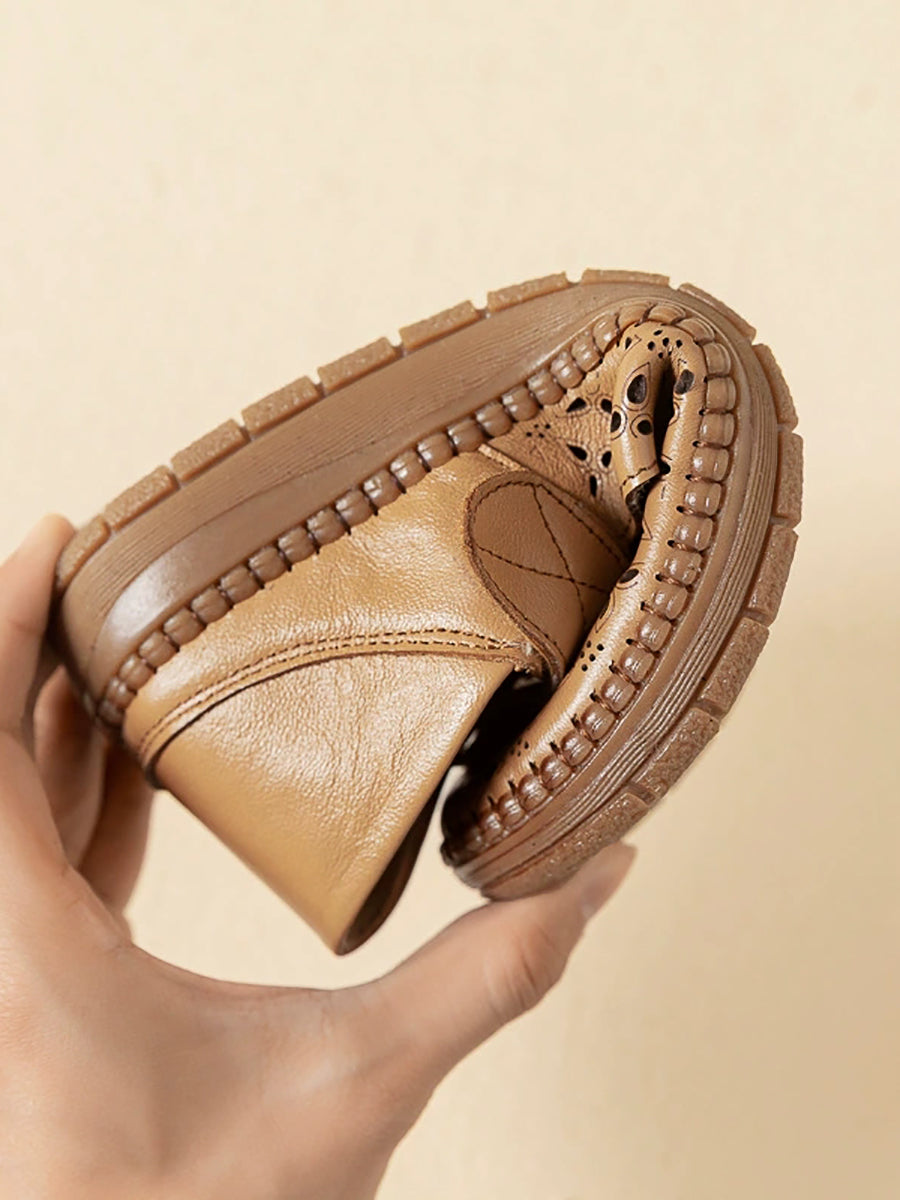 Women Vintage Genuine Leather Hollow Out Flat Shoes
