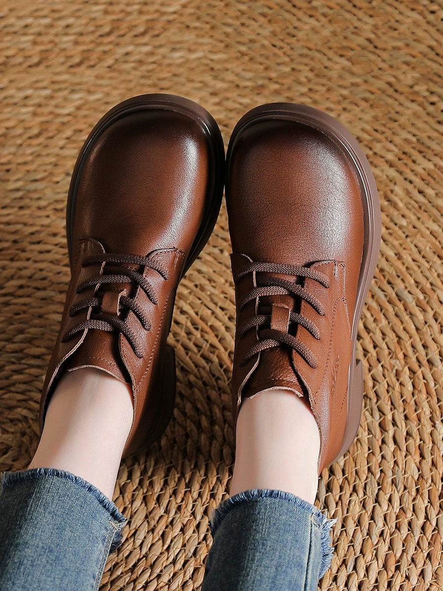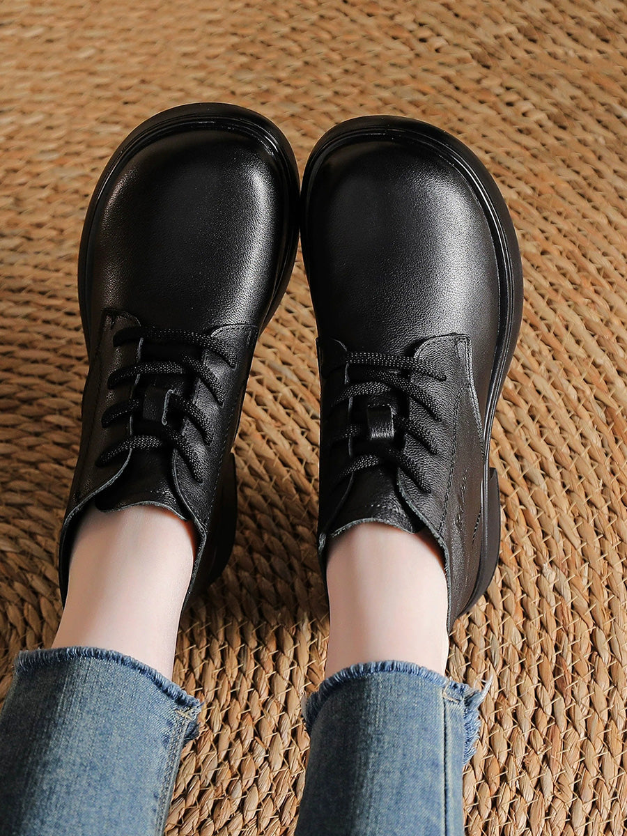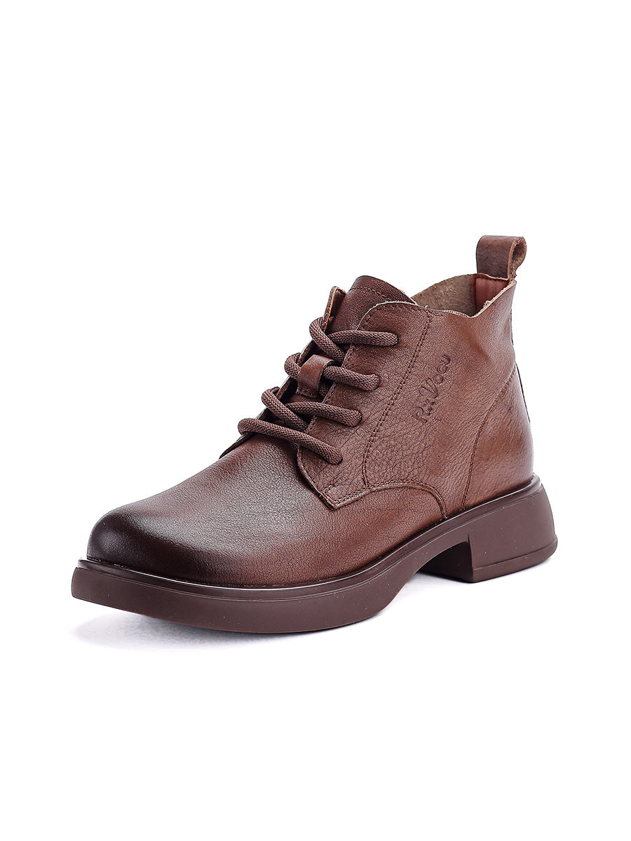Women Vintage Genuine Leather Low Heel Ankle Boots