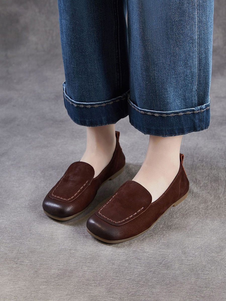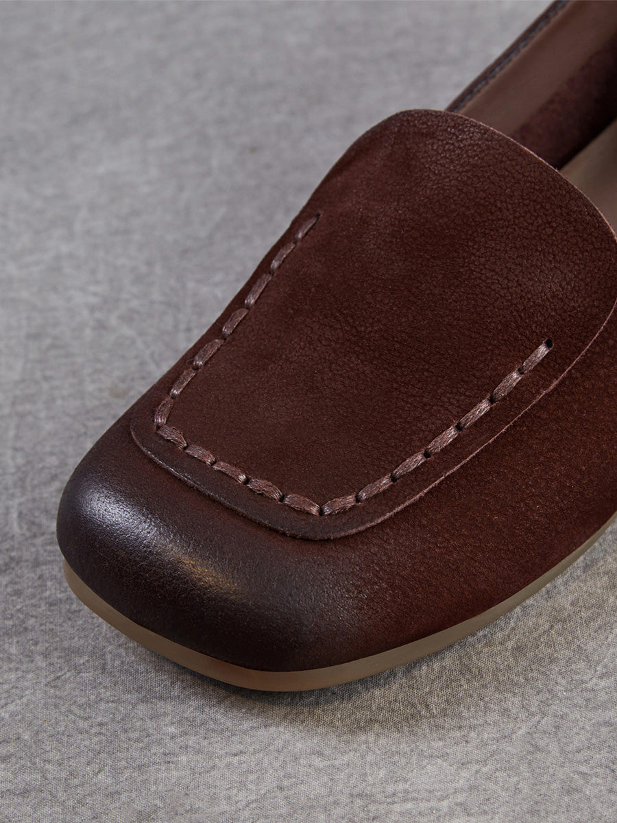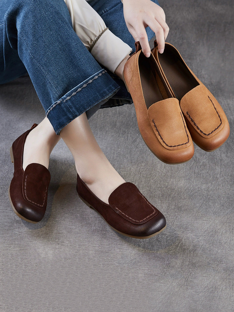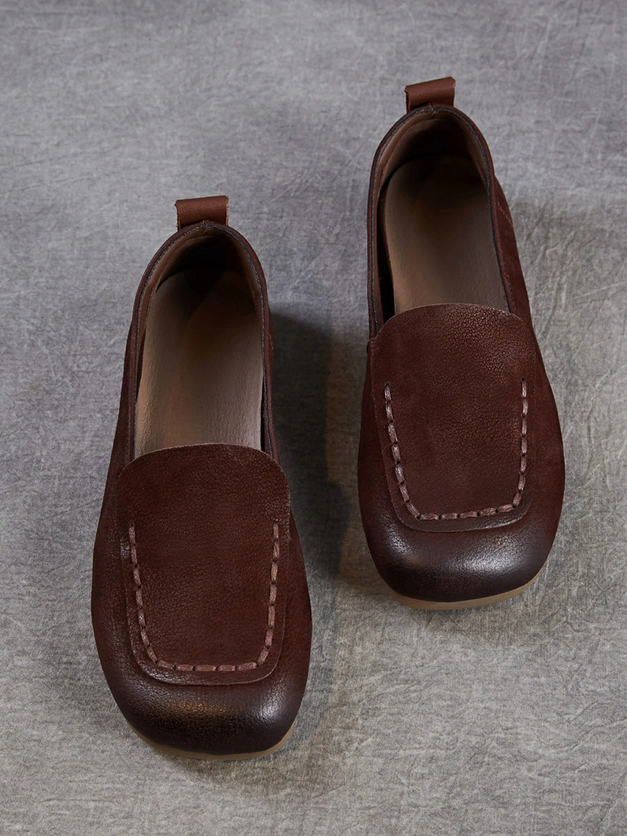 Women Vintage Genuine Leather Square Toe Shoes