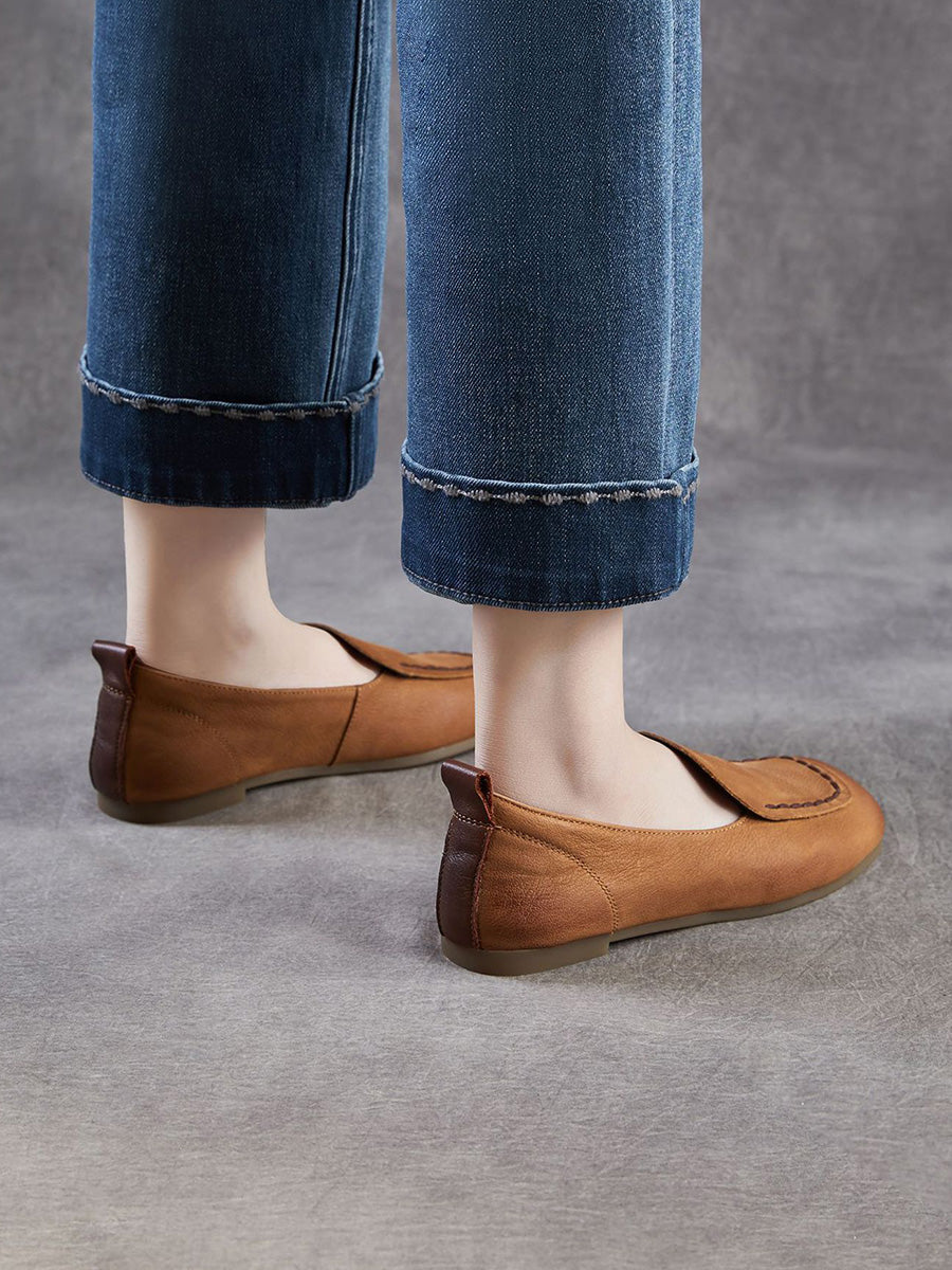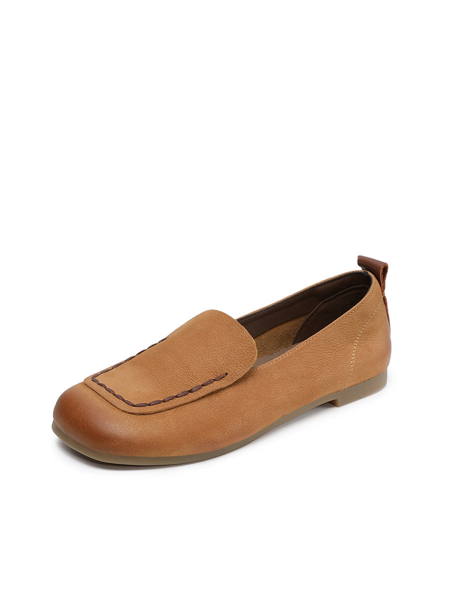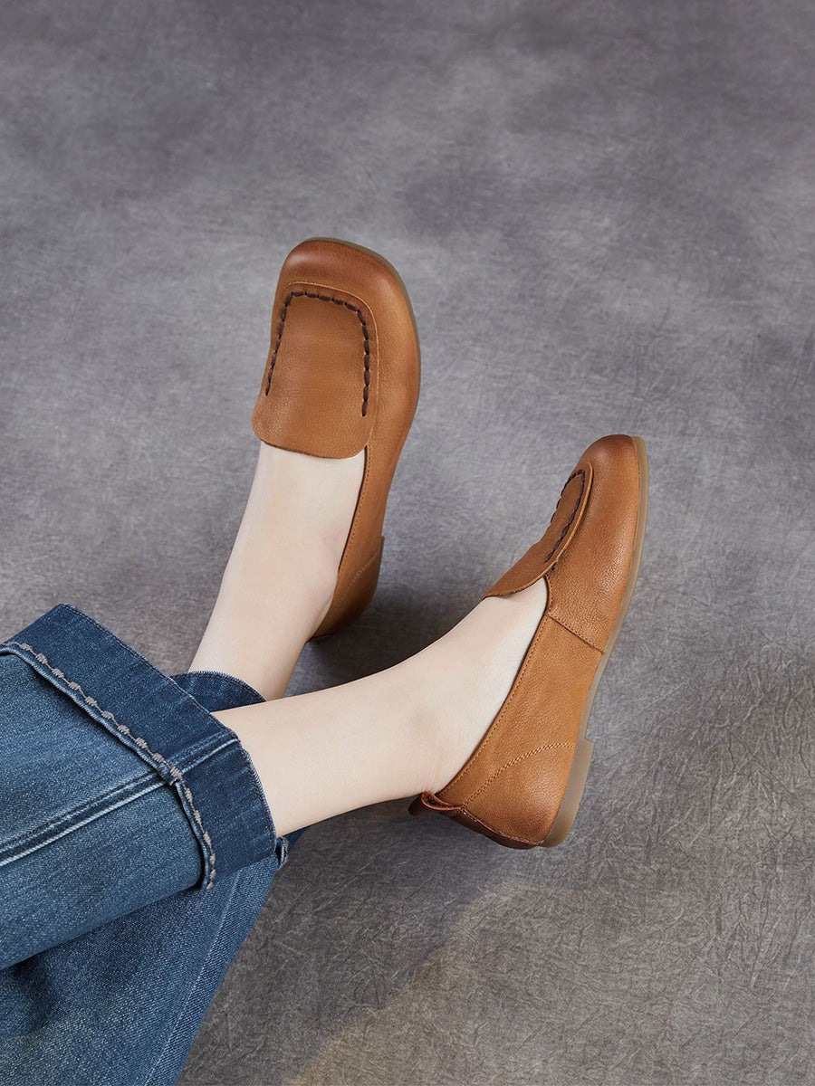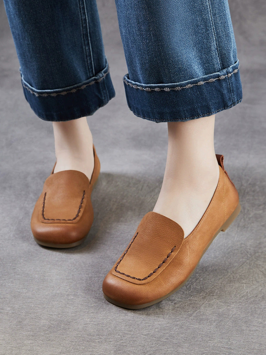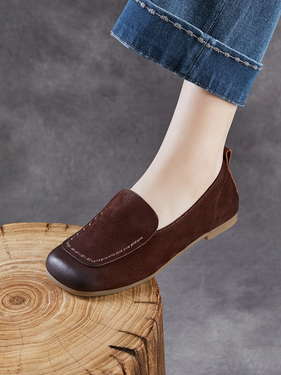 Women Vintage Genuine Leather Square Toe Shoes
