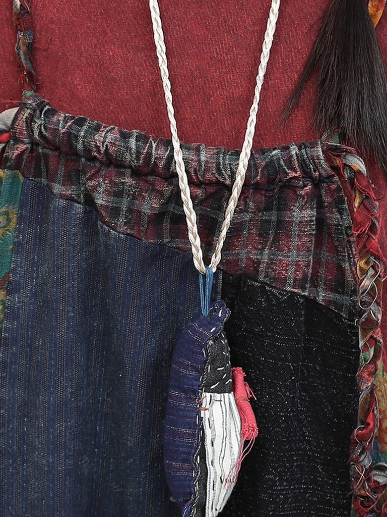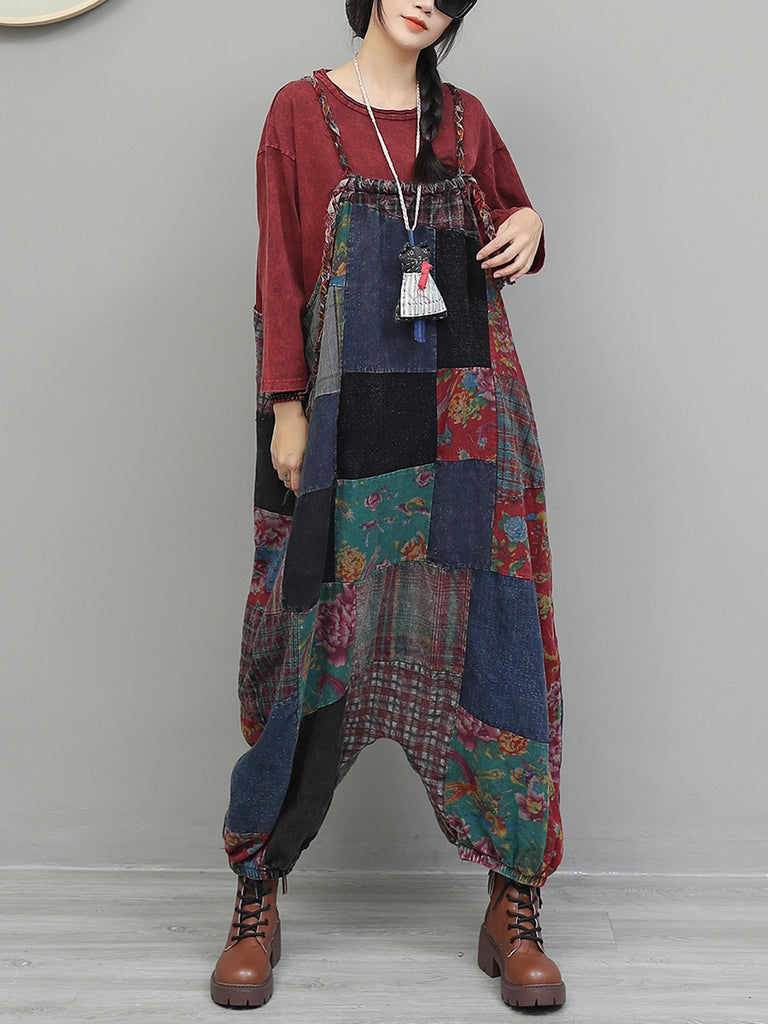 Women Vintage Patchwork Cotton Loose Jumpsuits