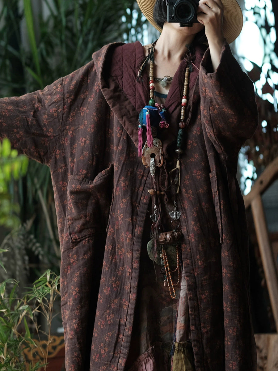 Women Vintage Winter Flower Cotton Hooded Padded Coat