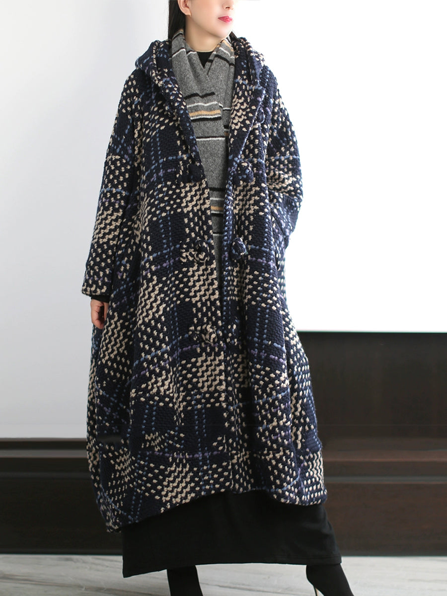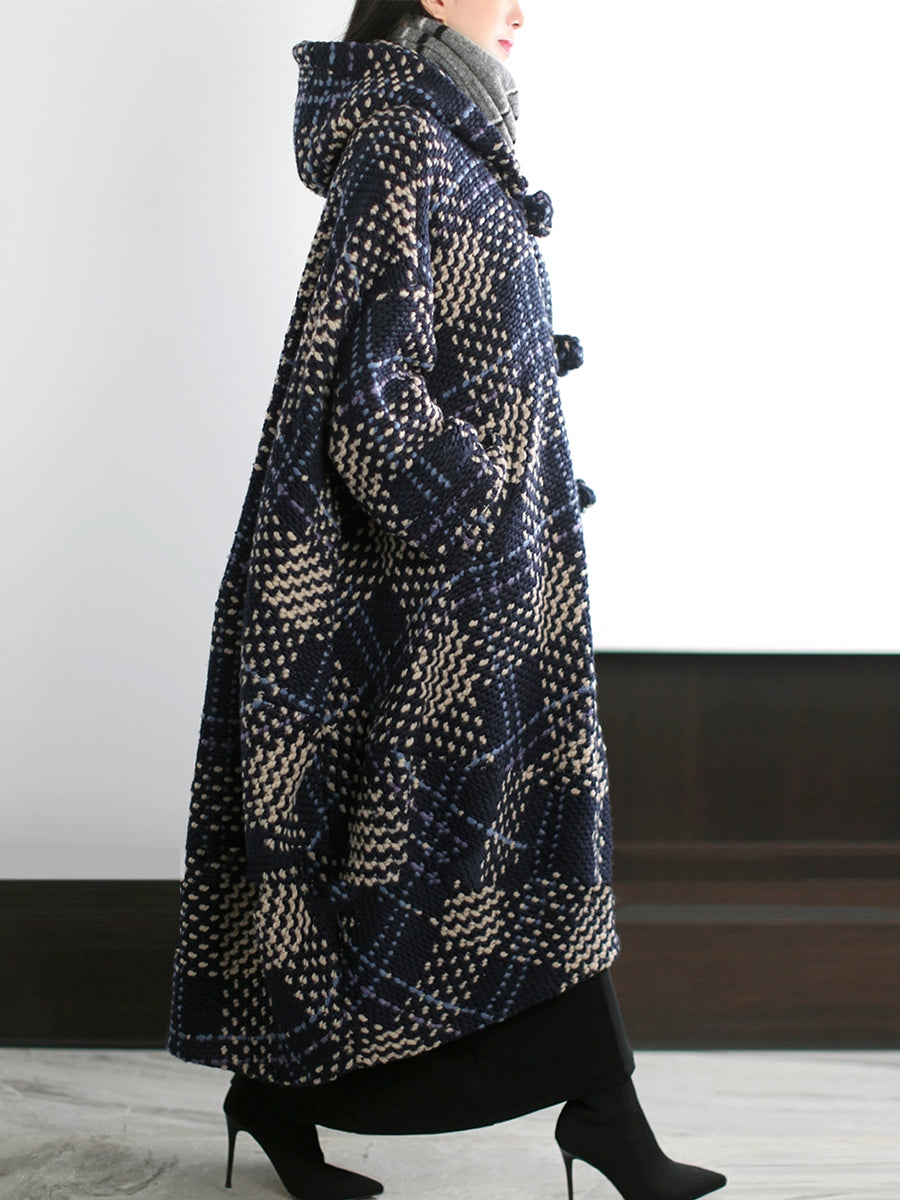 Crafted from a premium wool-polyester blend (65% wool, 35% polyester), this vintage-inspired overcoat delivers warmth and durability through the colder months. The classic plaid pattern evokes timeless style, while the hooded neckline provides practical coverage. Raglan sleeves ensure comfortable movement and a flattering silhouette. Ideal for autumn and winter wear, this retro piece combines heritage design with functional tailoring for the discerning wardrobe.