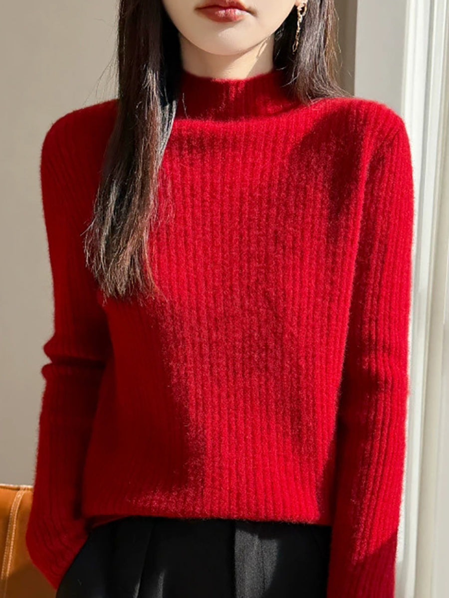 Women Winter Artsy Pure Color Wool Half-Turtleneck Sweater