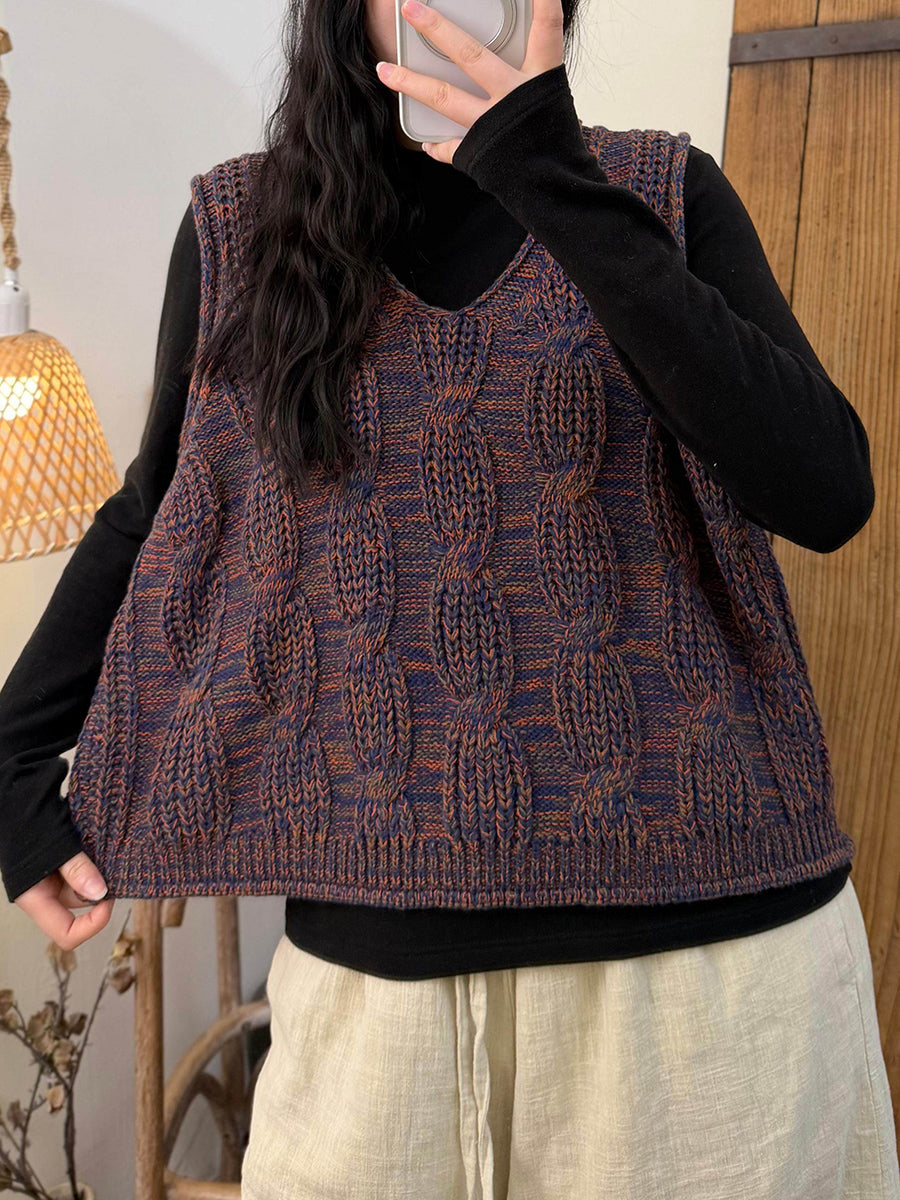Crafted from premium cotton, this artsy v-neck cable-knit vest delivers sophisticated layering for transitional seasons. The textured knit construction provides visual interest and dimensional appeal, while the classic v-neckline flatters various silhouettes. Ideal for spring and autumn wardrobes, this versatile piece pairs effortlessly with basics or statement pieces for curated, polished looks.