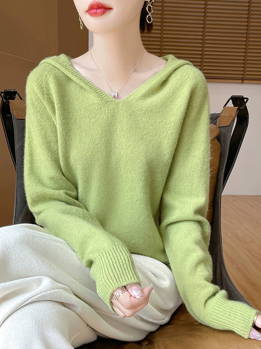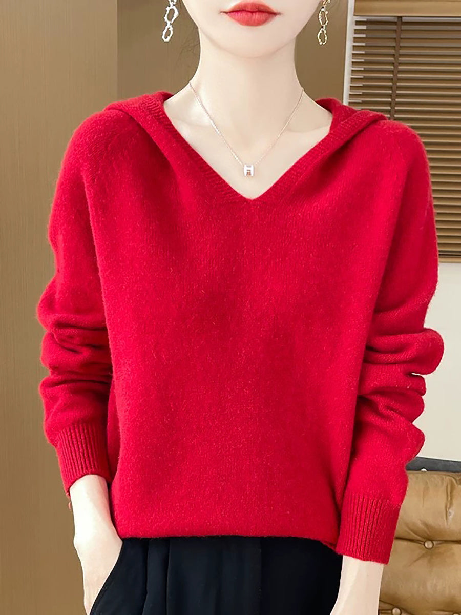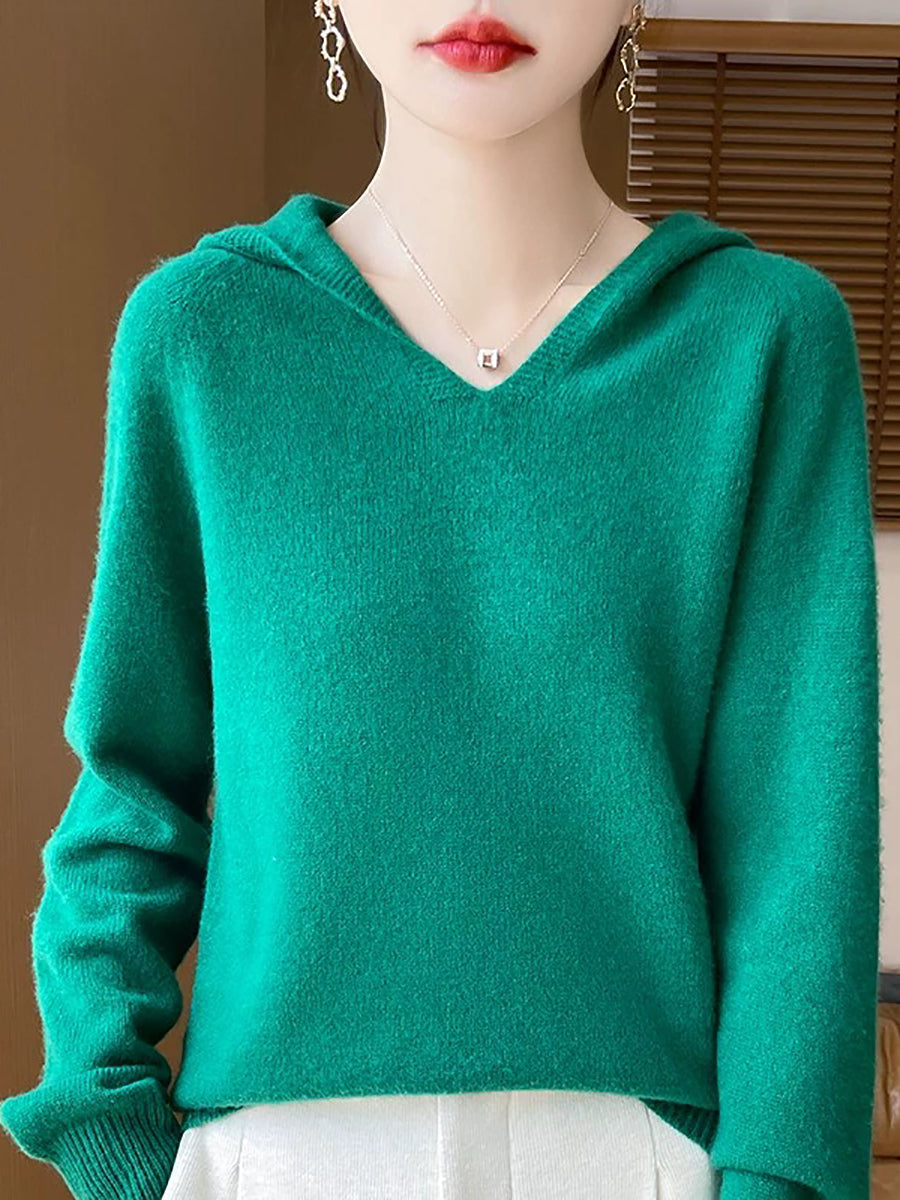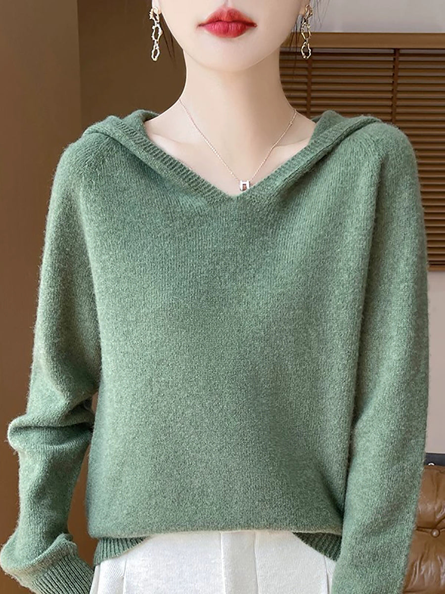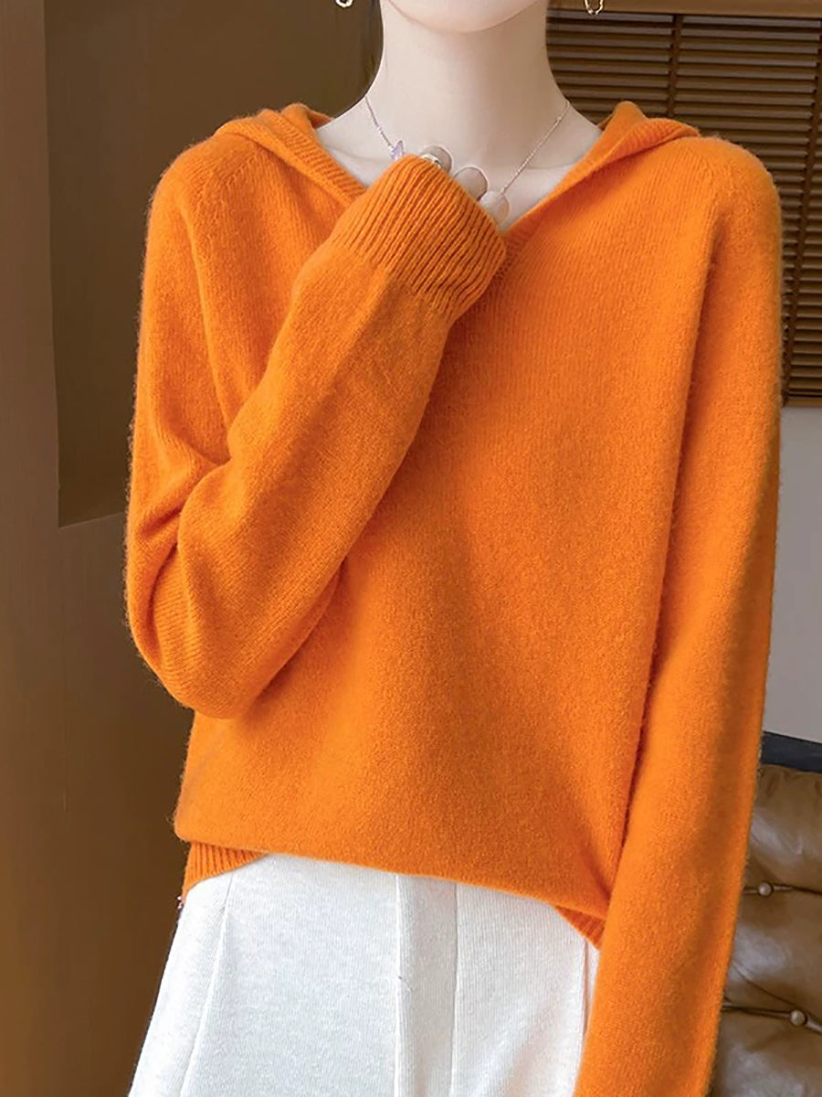Women Winter Casual Hooded Pure Color Sweater