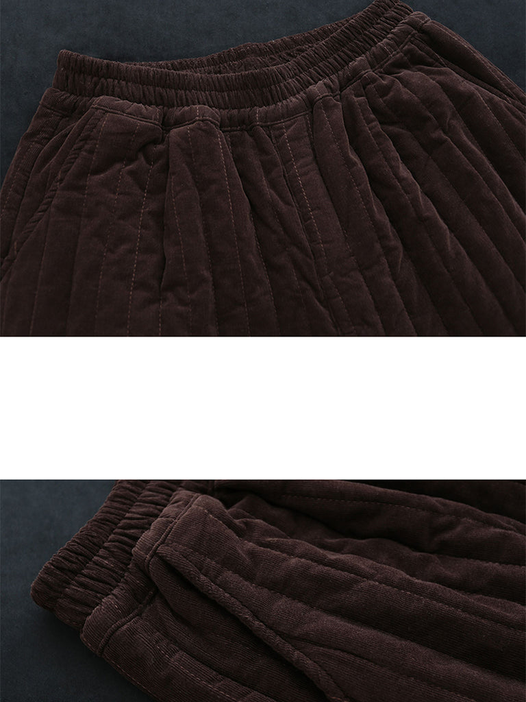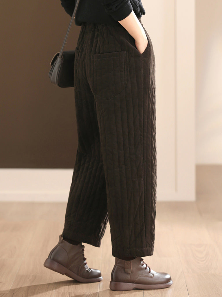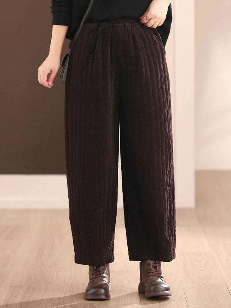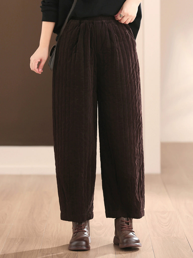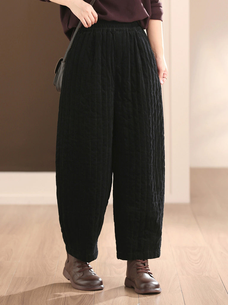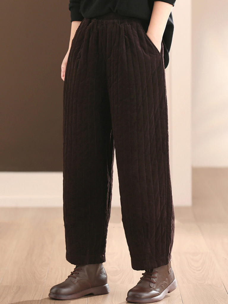 Women Winter Casual Pure Color Cotton Padded Harem Pants
