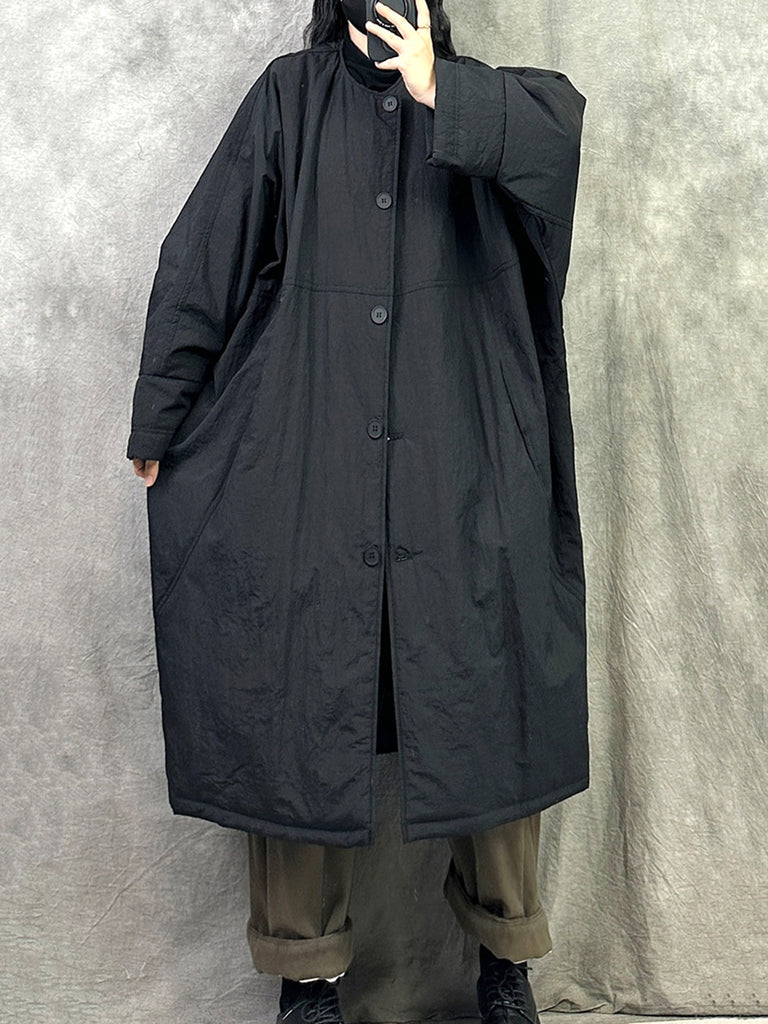 Women Winter Casual Pure Color O-Neck Long Padded Coat