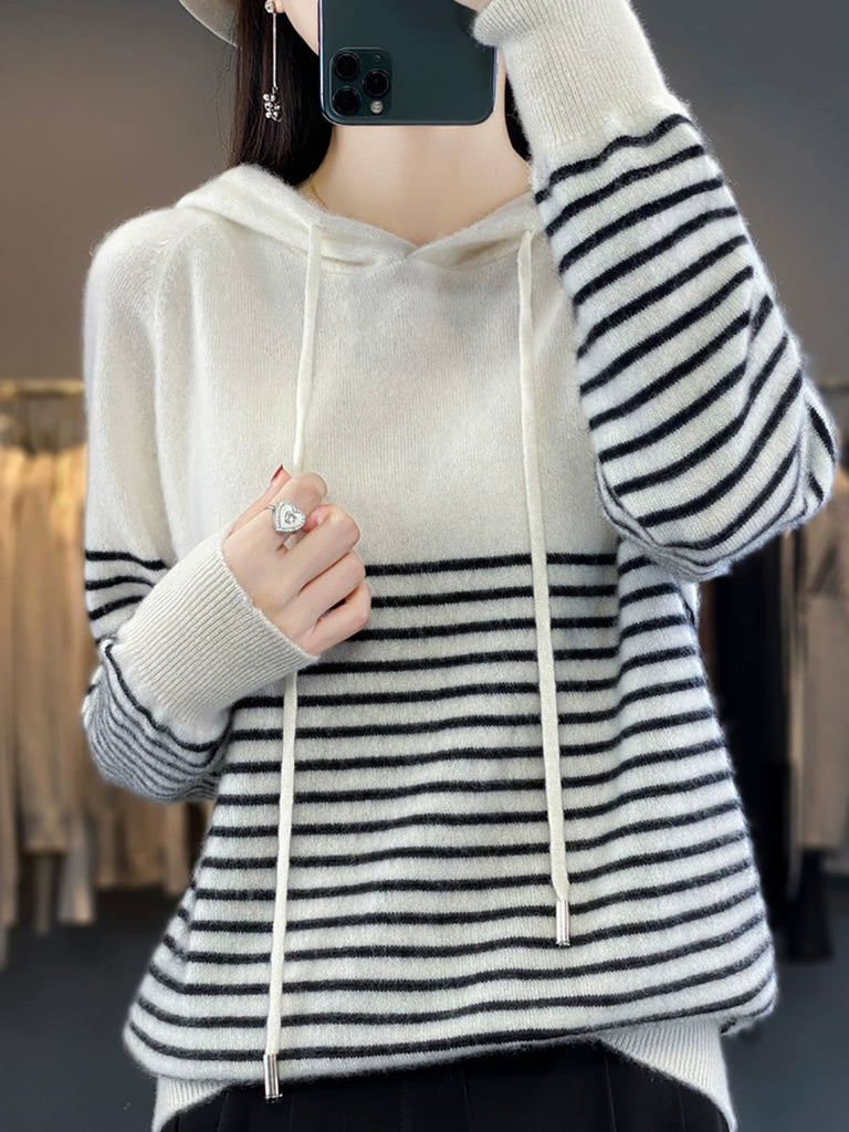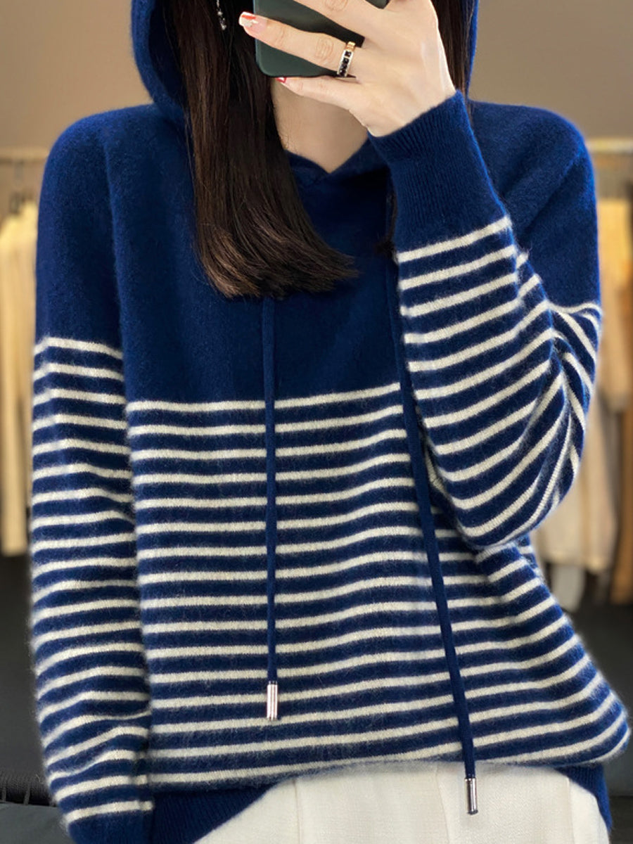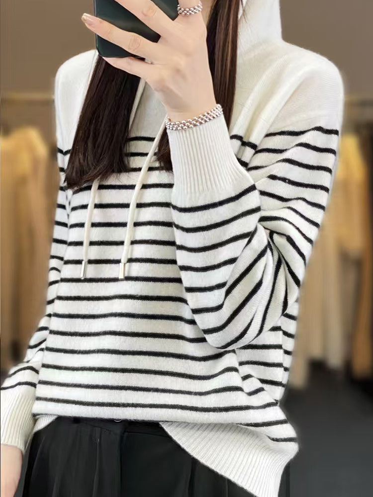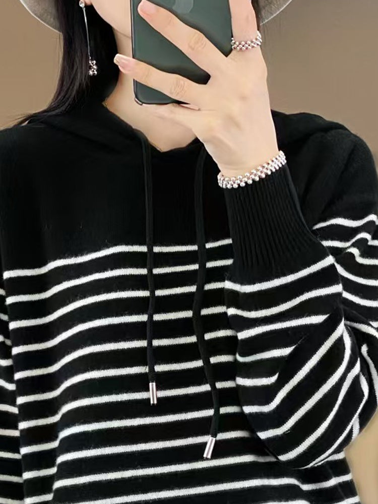 Women Winter Casual Stripe Hooded Sweater