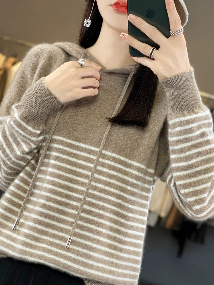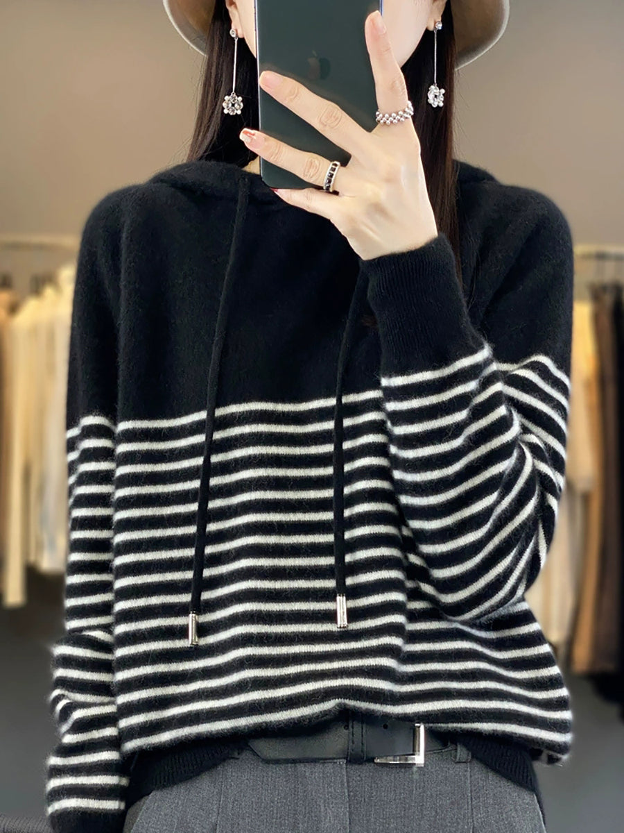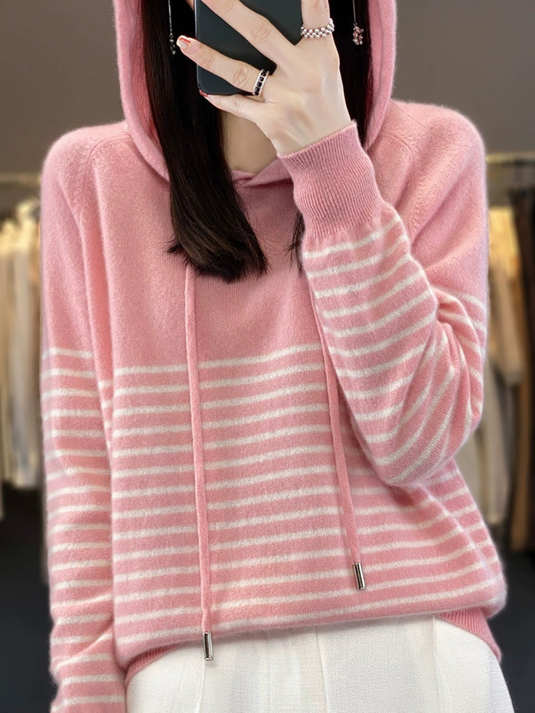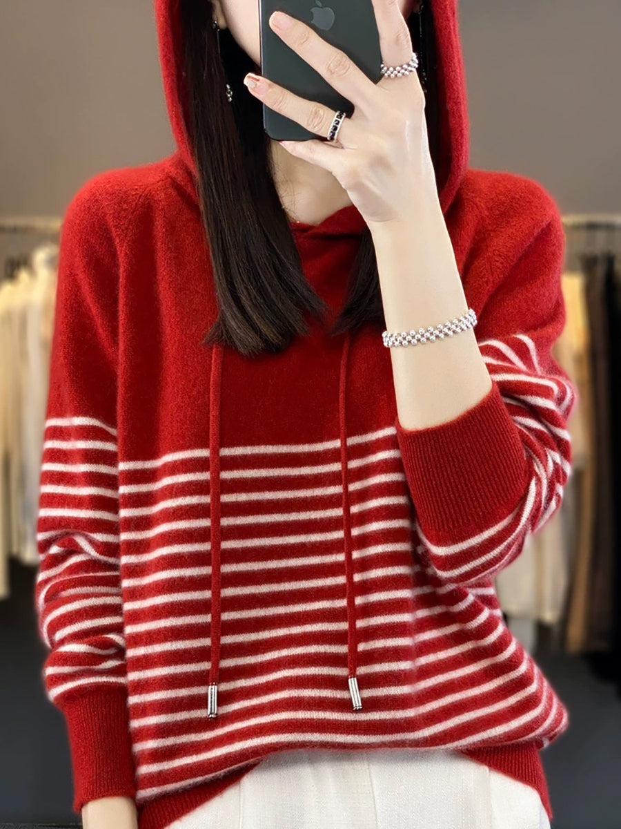 Women Winter Casual Stripe Hooded Sweater