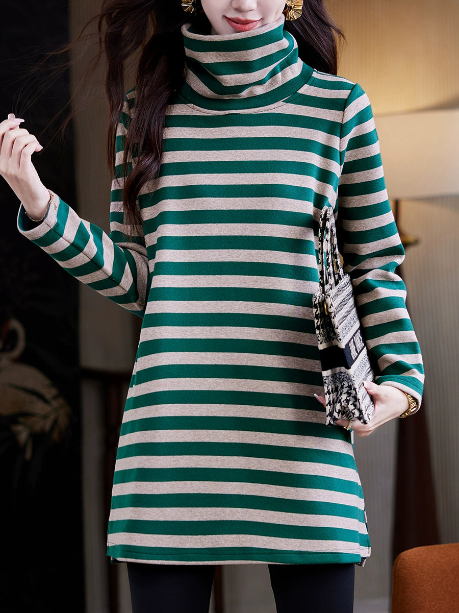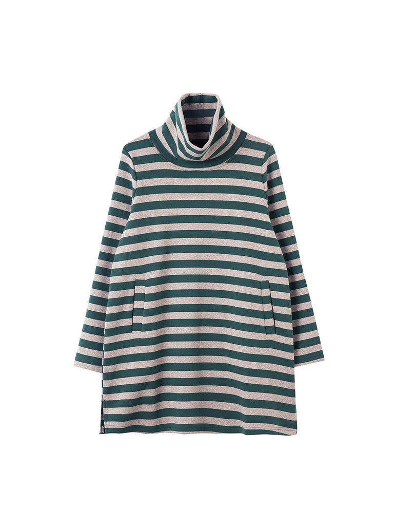 Crafted from a premium blend of 62.5% cotton, 33.5% polyester, and 4% spandex, this winter essential delivers both comfort and durability. The classic stripe pattern pairs seamlessly with a refined turtleneck collar, while full-length regular sleeves provide complete coverage. Designed with a relaxed casual aesthetic, it transitions effortlessly from autumn through winter, making it a versatile addition to any seasonal wardrobe.