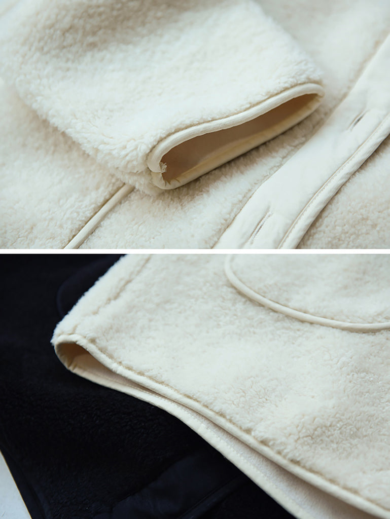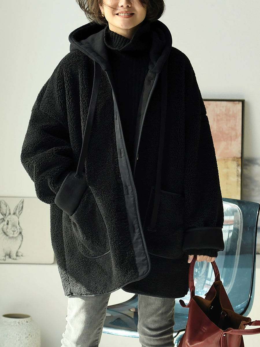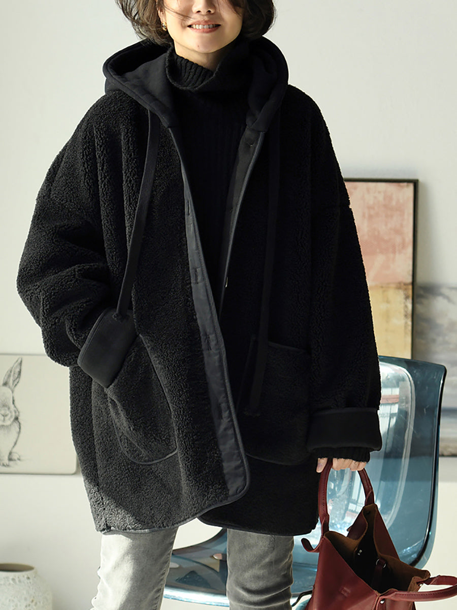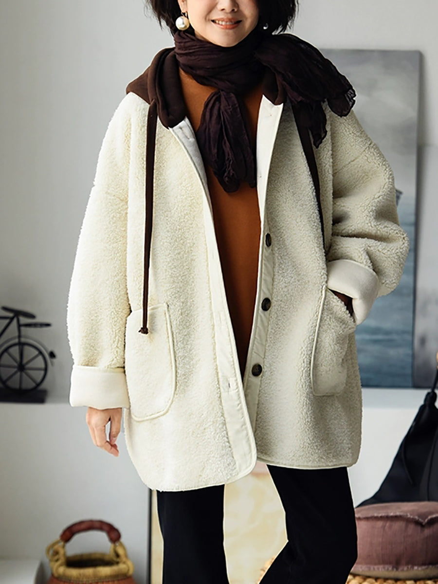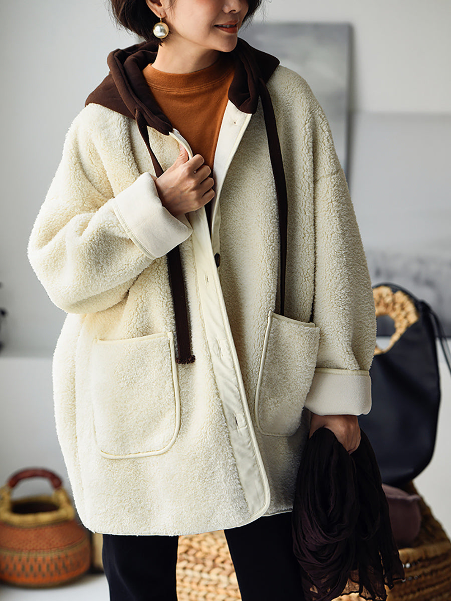 Women Winter Fleece Colorblock Padded Hooded Coat