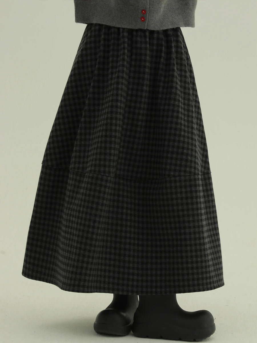Women Winter Fleece-lined Plaid A-Shape Skirt