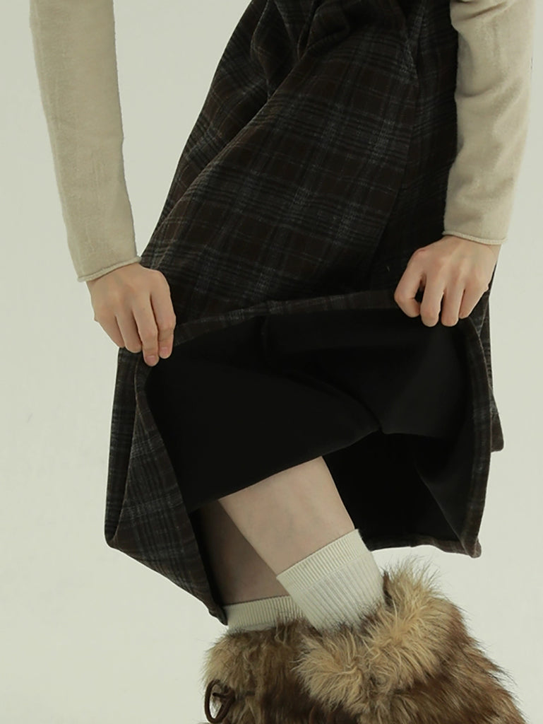 Women Winter Fleece-lined Plaid A-Shape Skirt