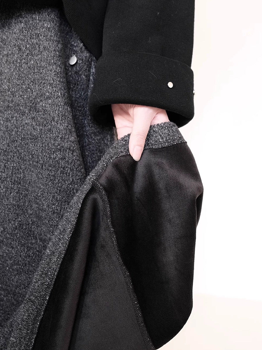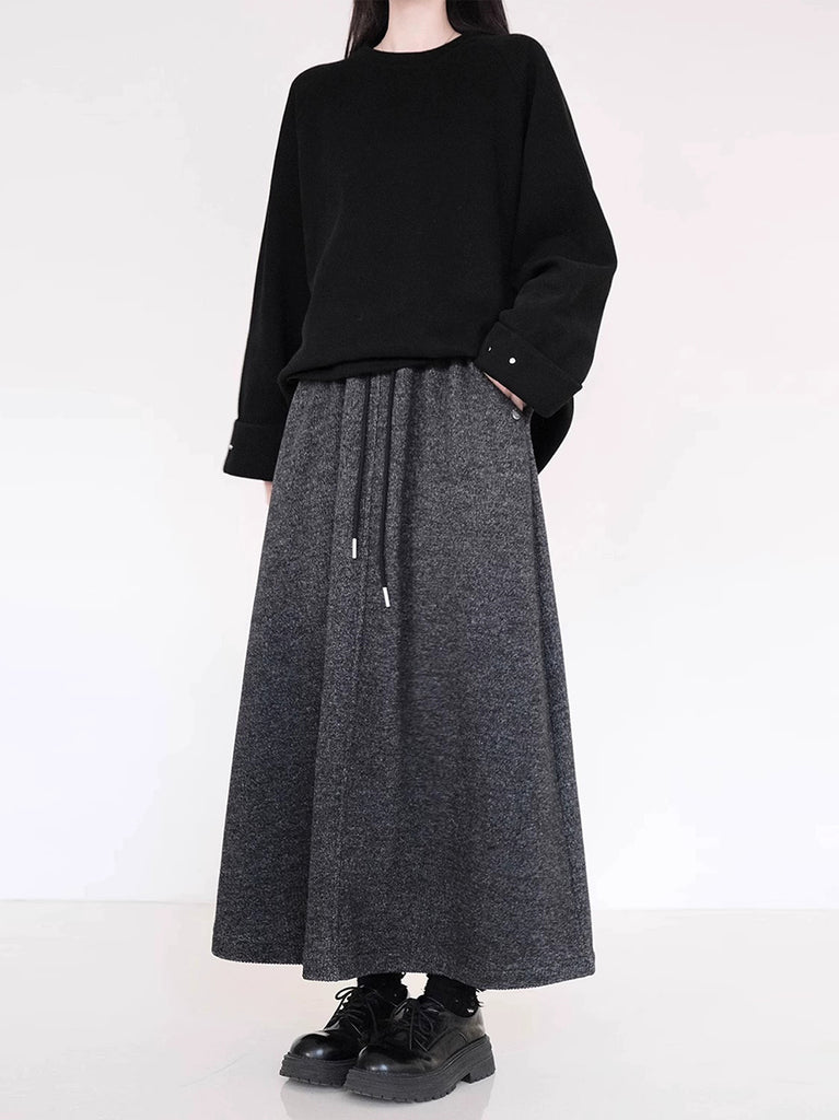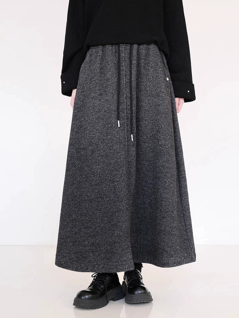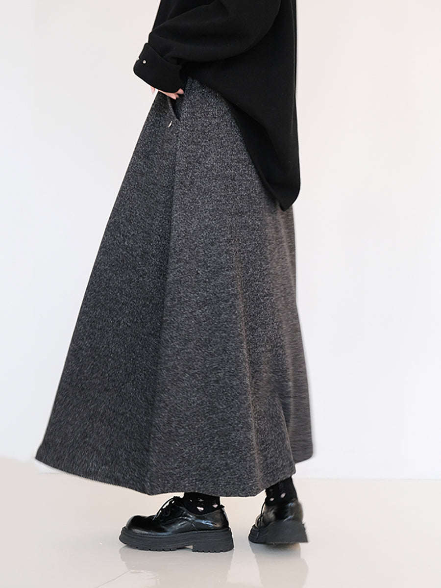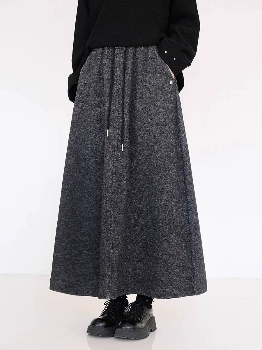 Women Winter Fleece-lined Pure Color A-Shape Skirt