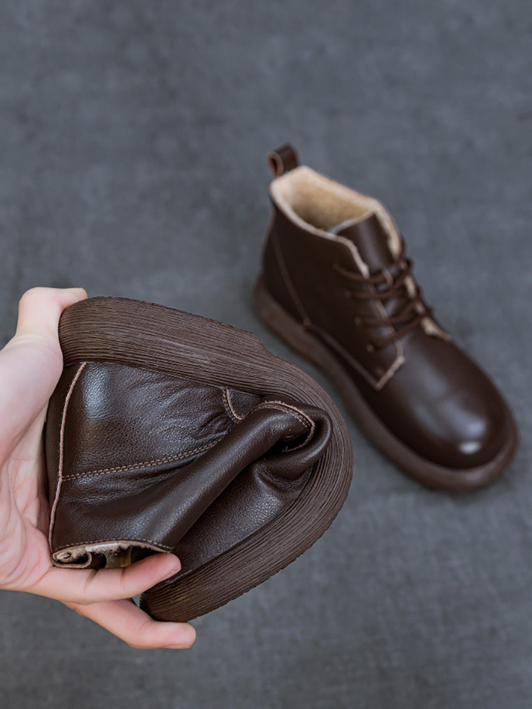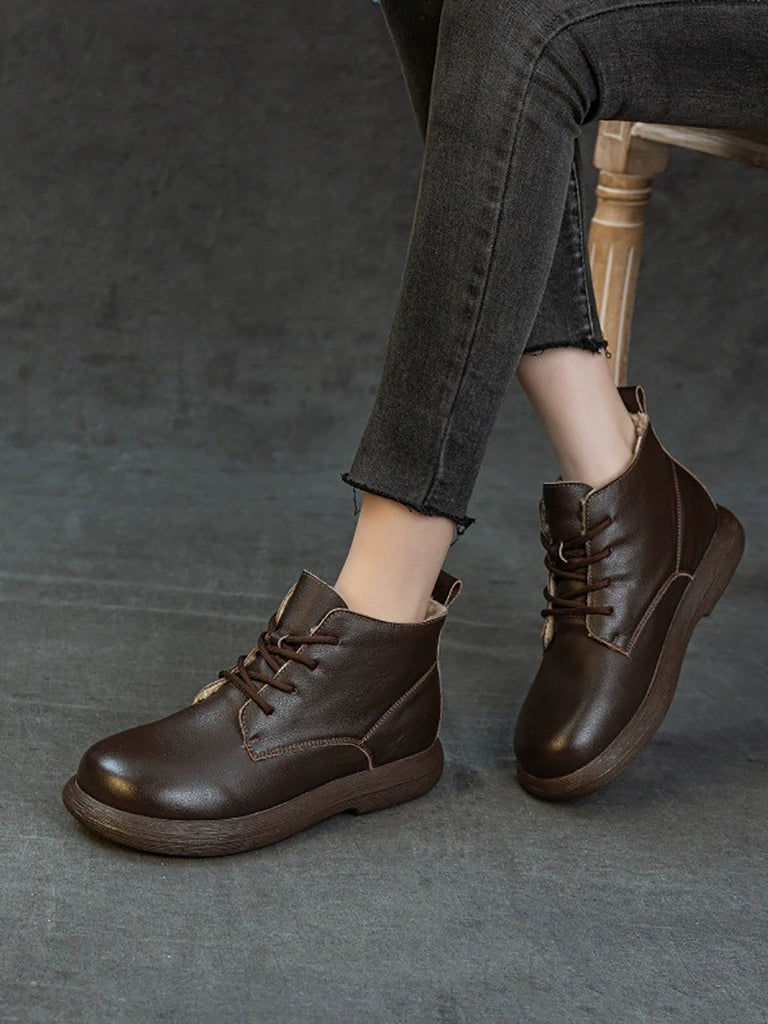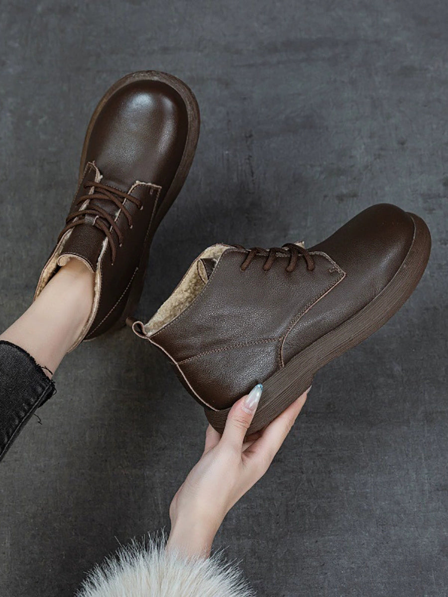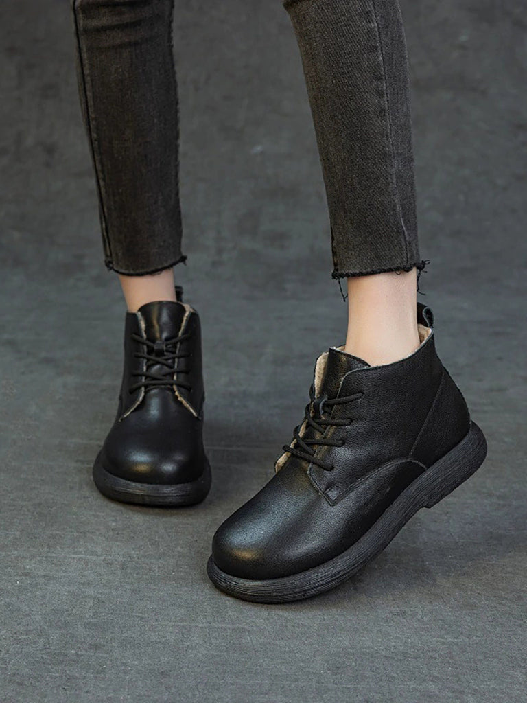 Women Winter Genuine Leather FLeece-lined Ankle Boots