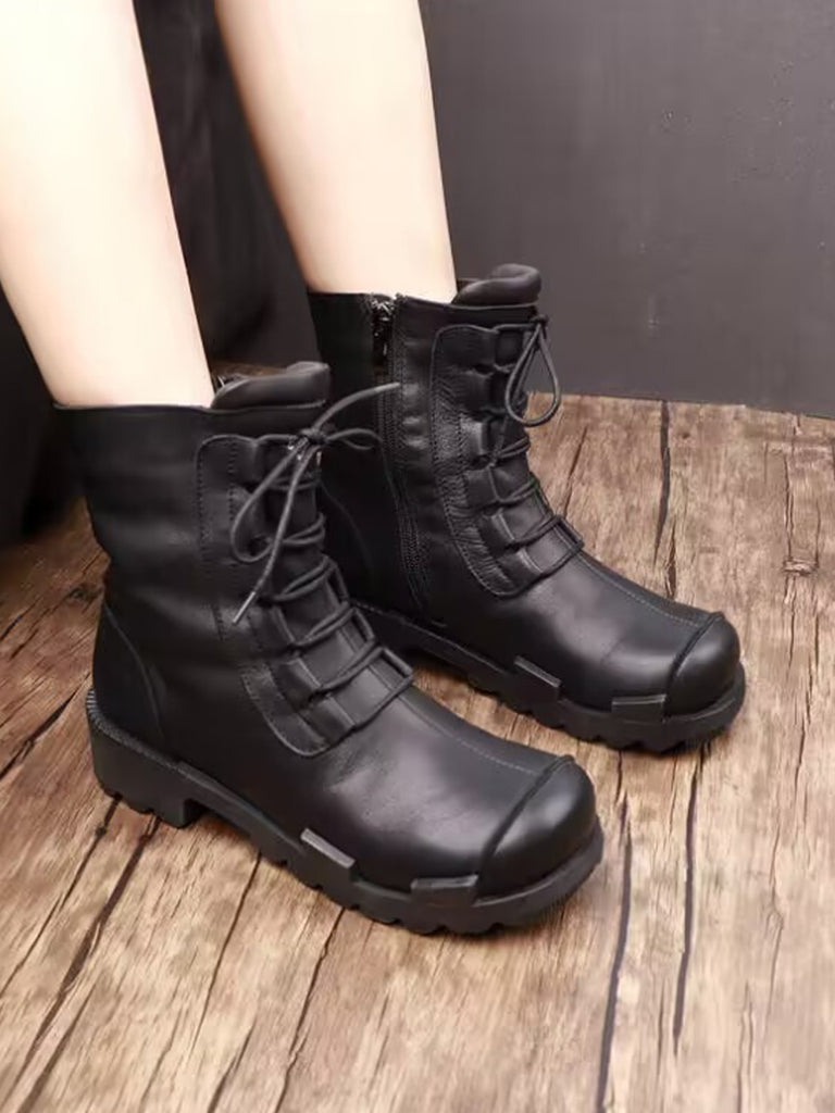 Women Winter Genuine Leather Fleece-lined Platform Boots