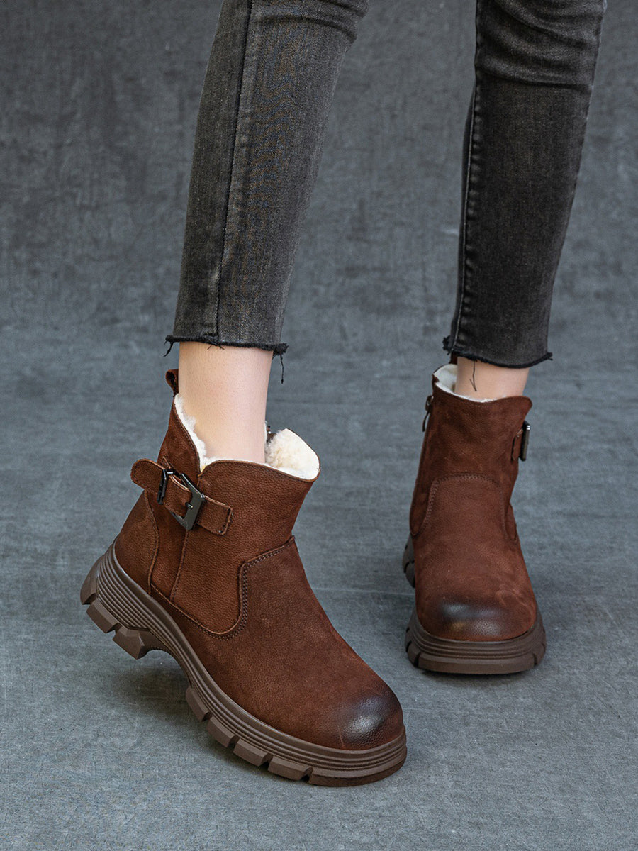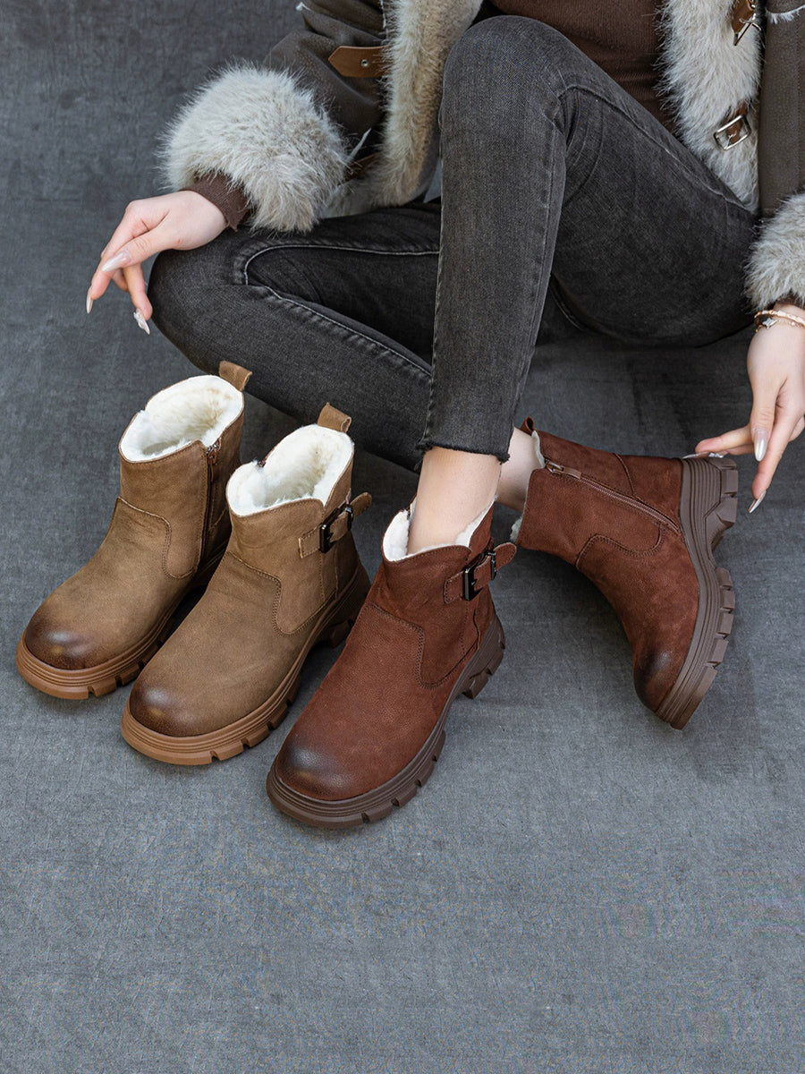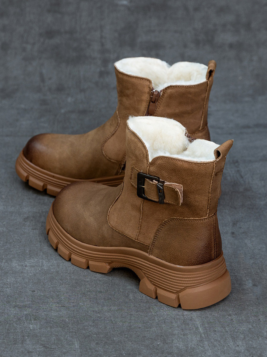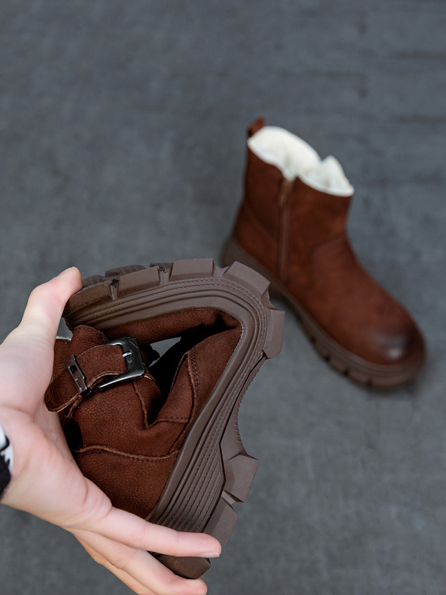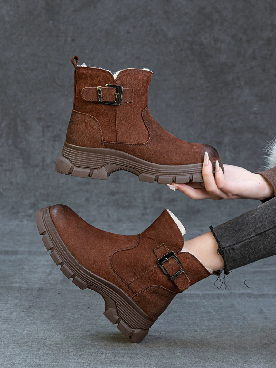 Women Winter Leather Fleece-lined Platform Boots