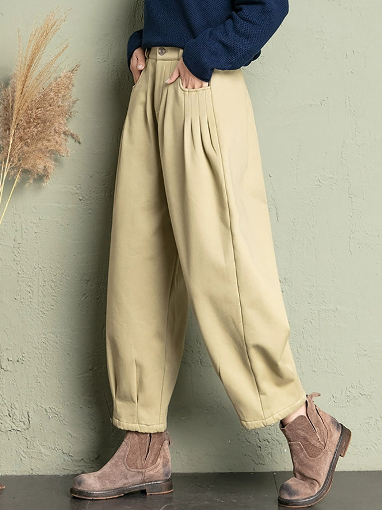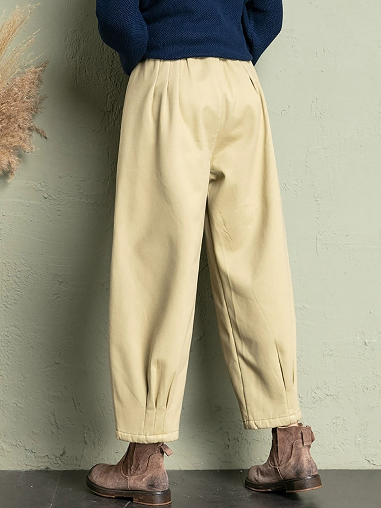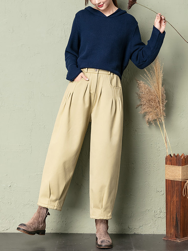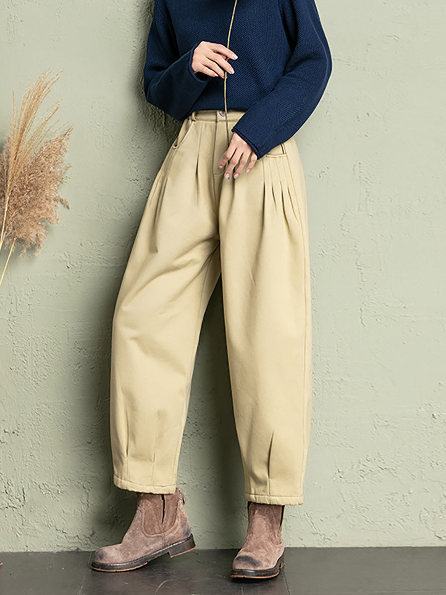 Women Winter Pure Color Fleece-lined 100%Cotton Harem Pants