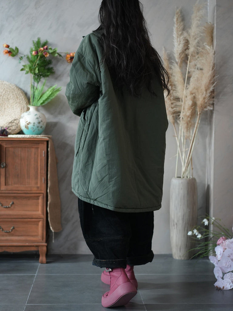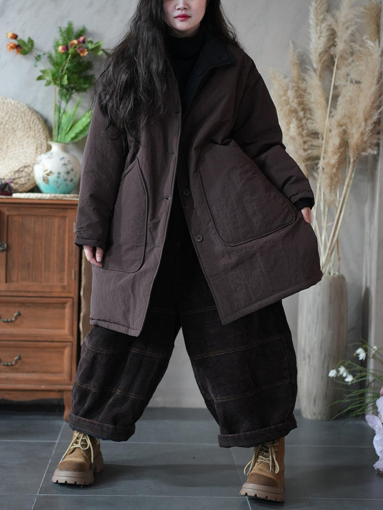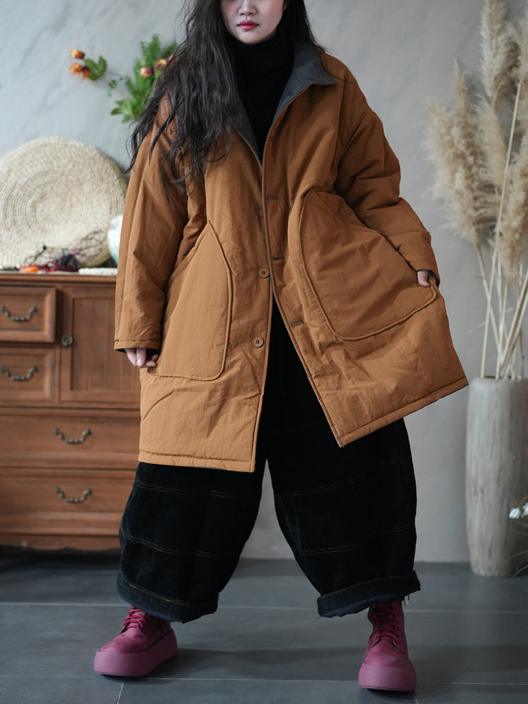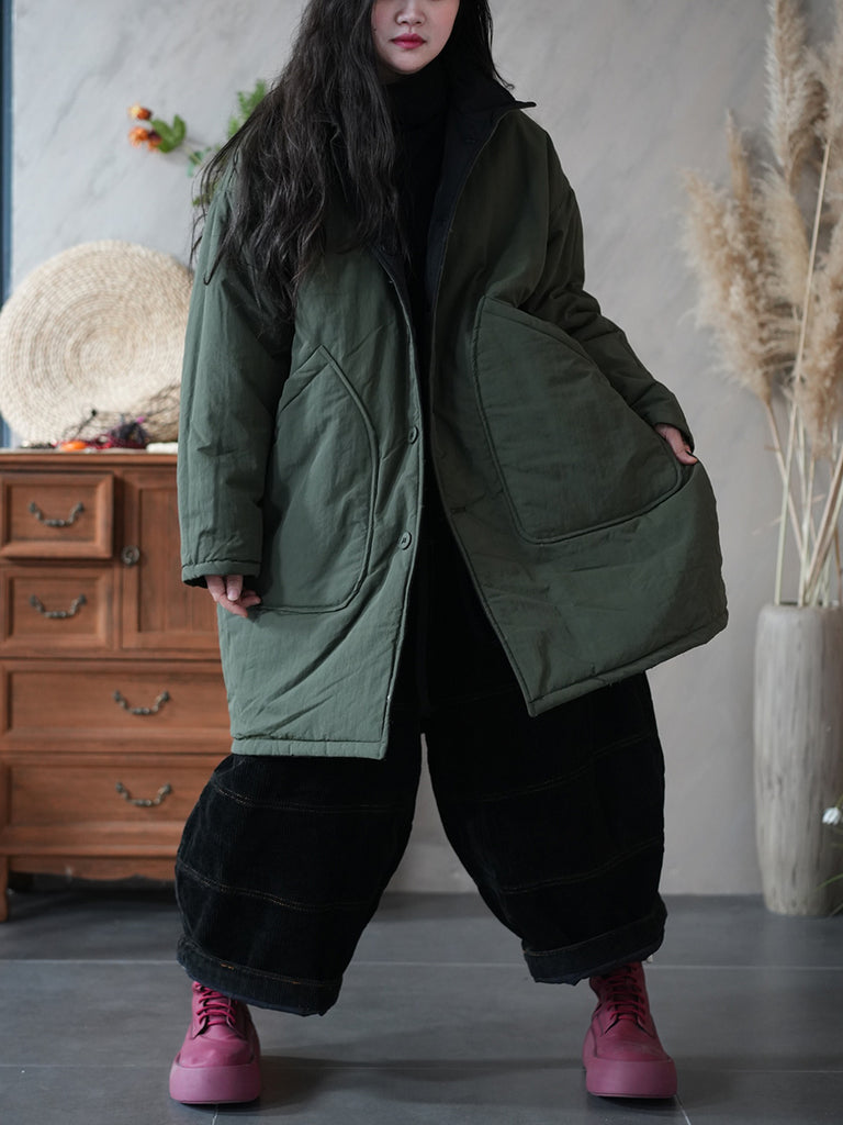 Women Winter Pure Color Two-sided Wearing Padded Overcoat