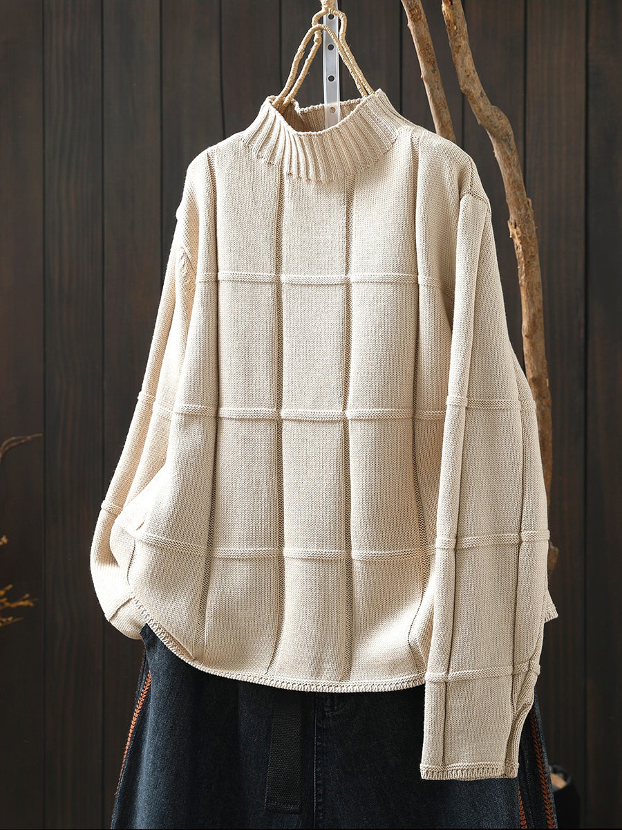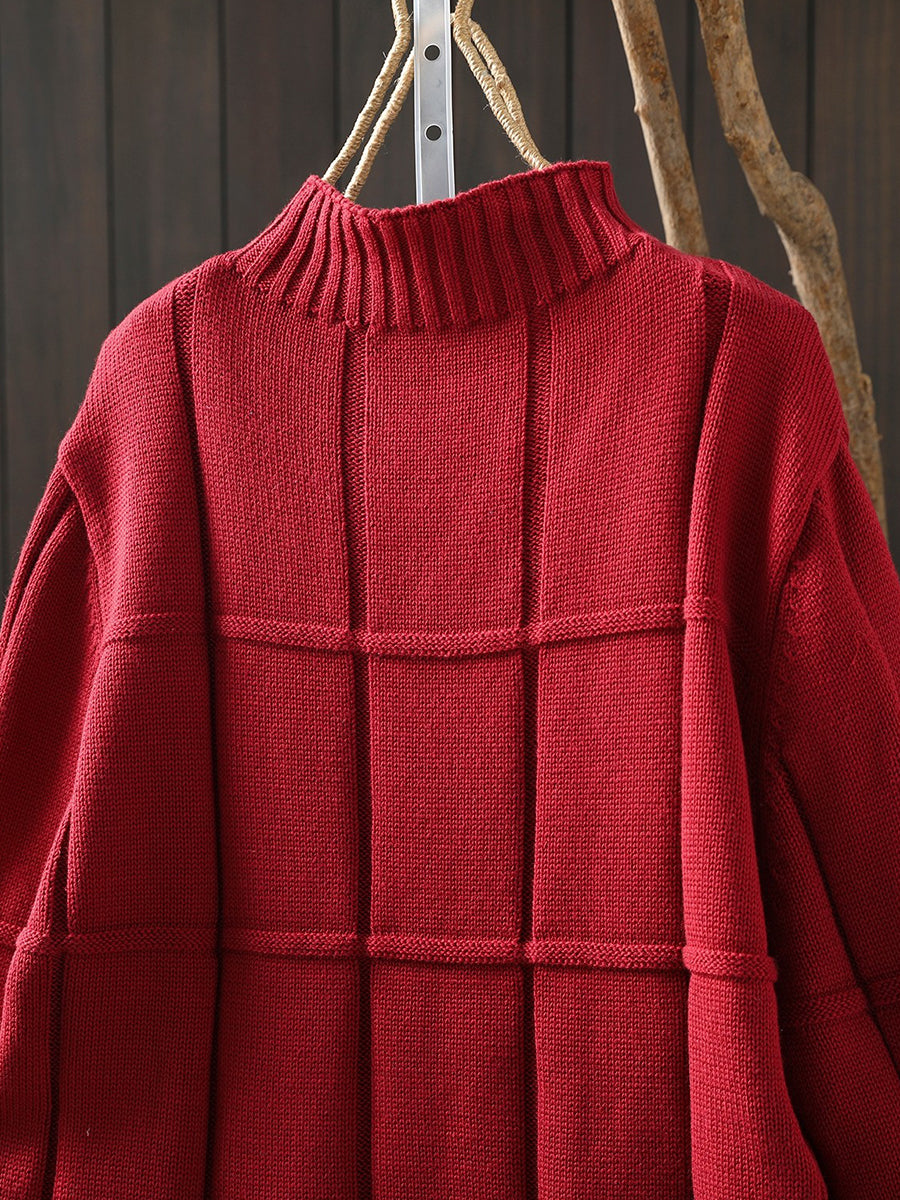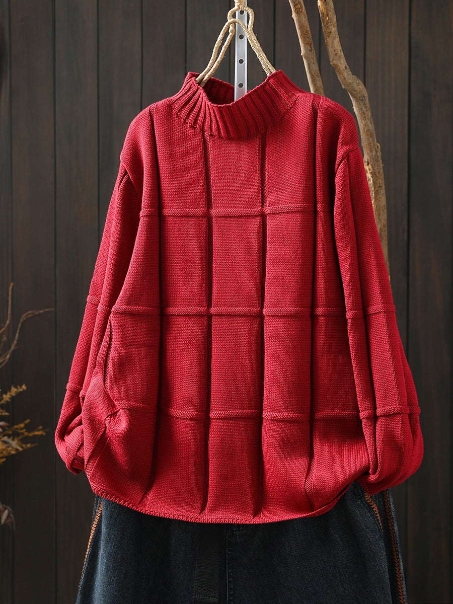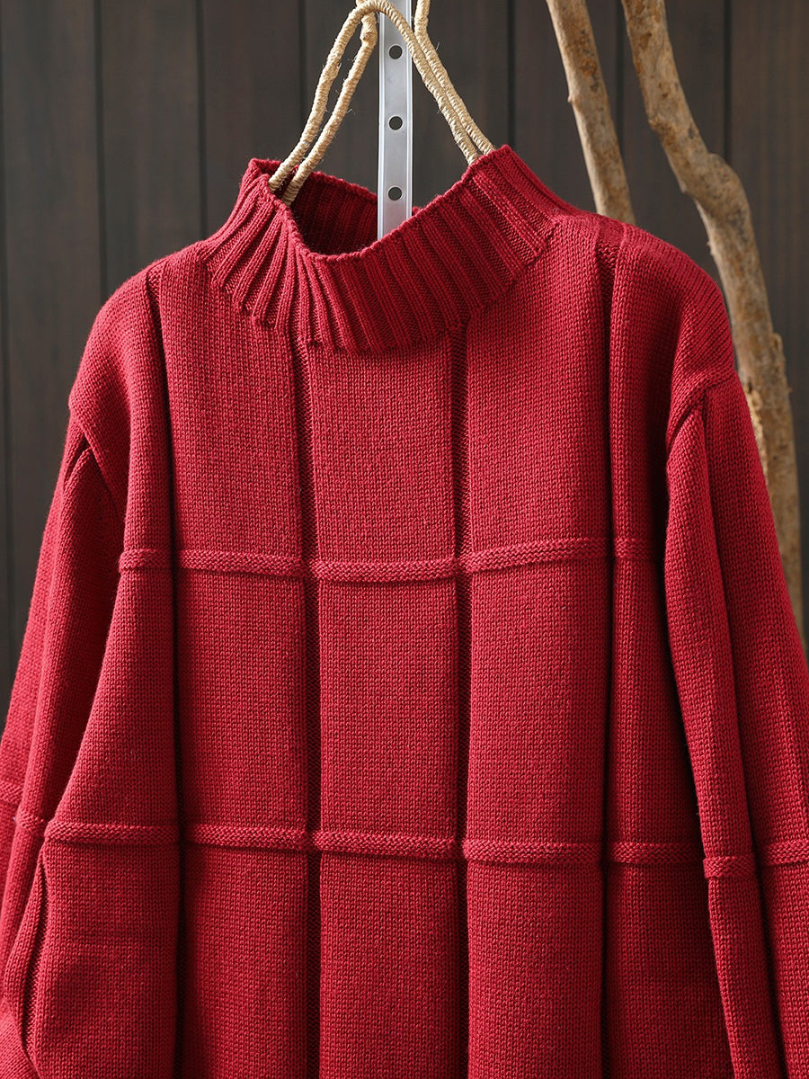 Women Winter Pure Color Knitted Half-turtleneck Sweater