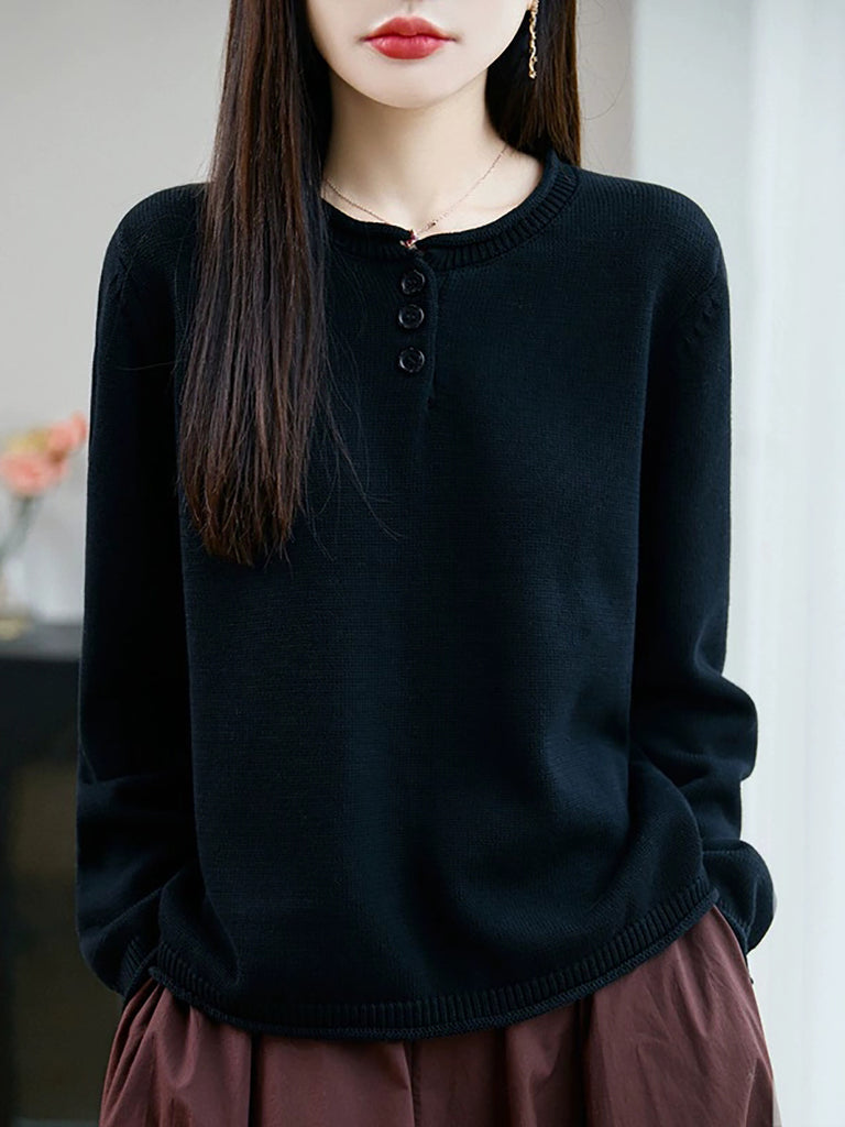Women Winter Pure Color O-Neck Knitted 100%Cotton Sweater