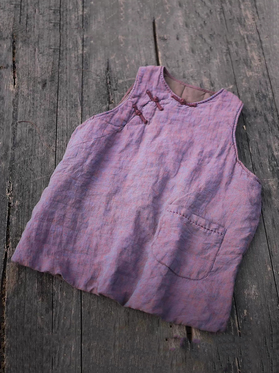 This sophisticated linen padded vest combines functional warmth with understated elegance. Featuring a refined o-neck design and solid colorway, it embodies an ethnic aesthetic that complements contemporary wardrobes. The linen fabric delivers natural breathability and durability, making it an ideal layering solution for autumn and winter seasons. A versatile staple that bridges seasonal transitions with effortless style.