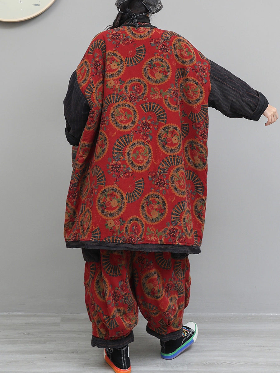 Women Winter Retro Patchwork O-Neck Padded Suits