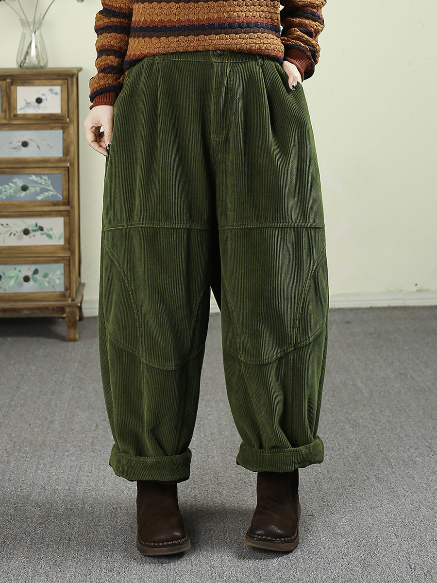 Women Winter Retro Pure Color Fleece-lined Harem Pants