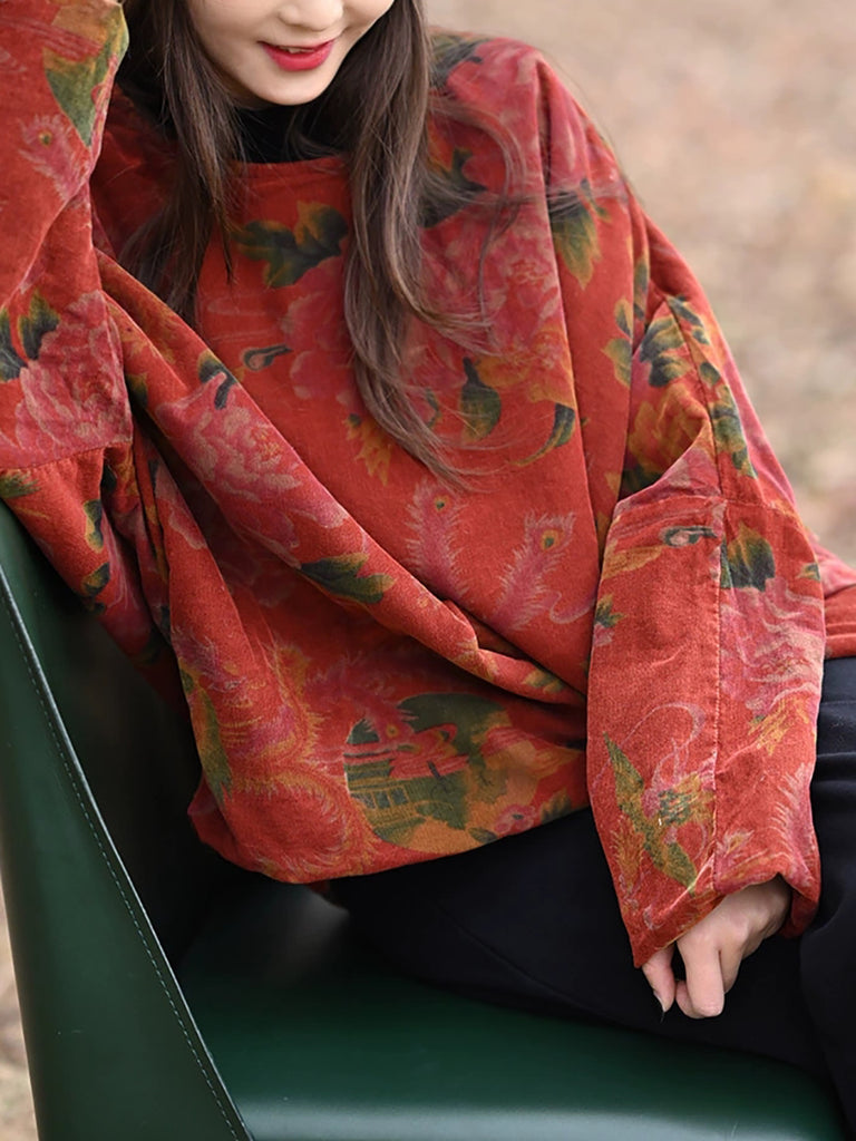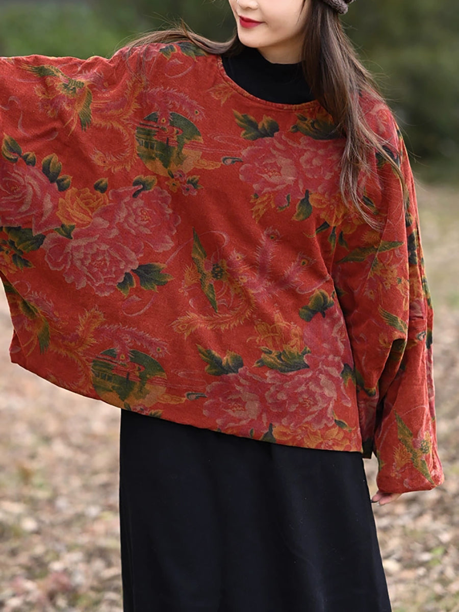 Women Winter Vintage Flower Padded O-Neck Coat