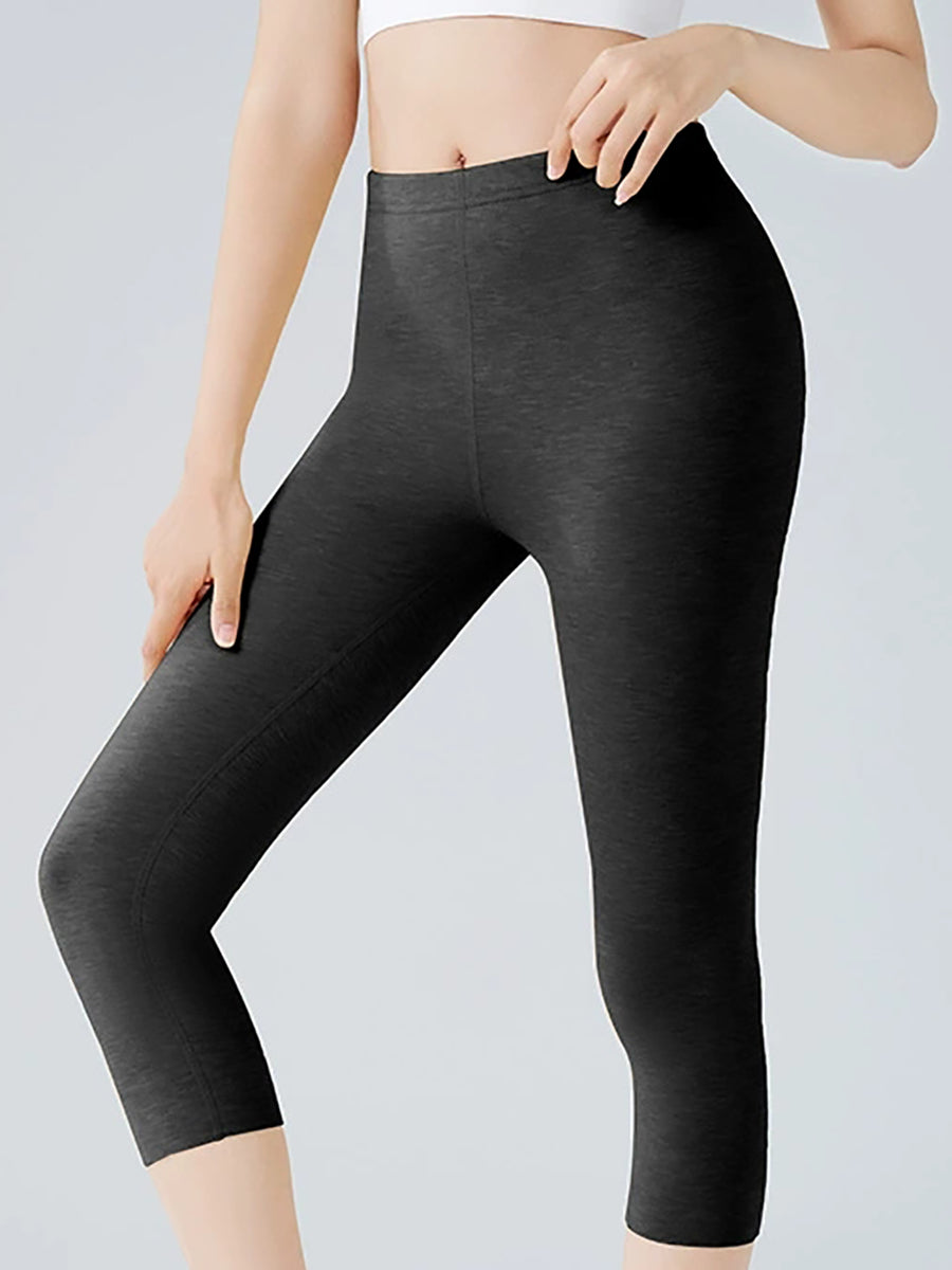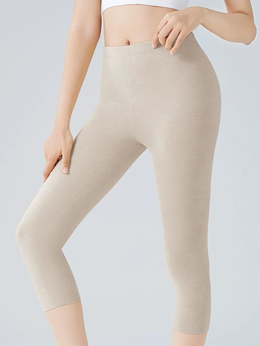Women Winter Warm Pure Color Capri Leggings